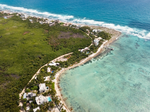 Discover an extraordinary opportunity to own a prime beachfront lot in the exclusive and serene Tankah Bay, Tulum. Spanning an impressive 3,261 square meters (35,104 square feet) with 79 meters (259 feet) of pristine ocean frontage, this rare parcel offers a perfect setting for a private luxury estate or a high-end boutique development.