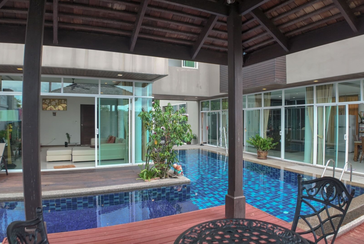 This well-maintained, fully furnished 4-bedroom, 4-bathroom standalone villa in Rawai offers a perfect blend of Thai contemporary design and modern comfort. Situated in a peaceful residential area, this property features a rooftop with a sea view, making it an exceptional home or investment opportunity. Property Features: Updated Price: Now 14.9MB (Previously 15.5MB) Chanote title, Thai ownership Land size: 380 sqm | Building area: 700 sqm 4 spacious bedrooms with private balconies 4 bathrooms (2 en-suite) with modern fittings Bright living room & spacious dining area Fully equipped modern kitchen with breakfast bar Private swimming pool with pool terraces and pavilion area Rooftop terrace with stunning sea views Solar panels for energy efficiency Covered carport for 2 vehicles Move-in ready and well-maintained Location Highlights: 2.3 km to Rawai Beach – a hub for beachfront dining and local markets 4.5 km to Makro, Go Wholesale, and other major amenities Easy access to Nai Harn Beach, Chalong, and local shopping centers This villa is an excellent choice for families, retirees, or investors looking for a private, well-kept home in one of Phuket’s most sought-after areas. Contact us today to schedule a private viewing.