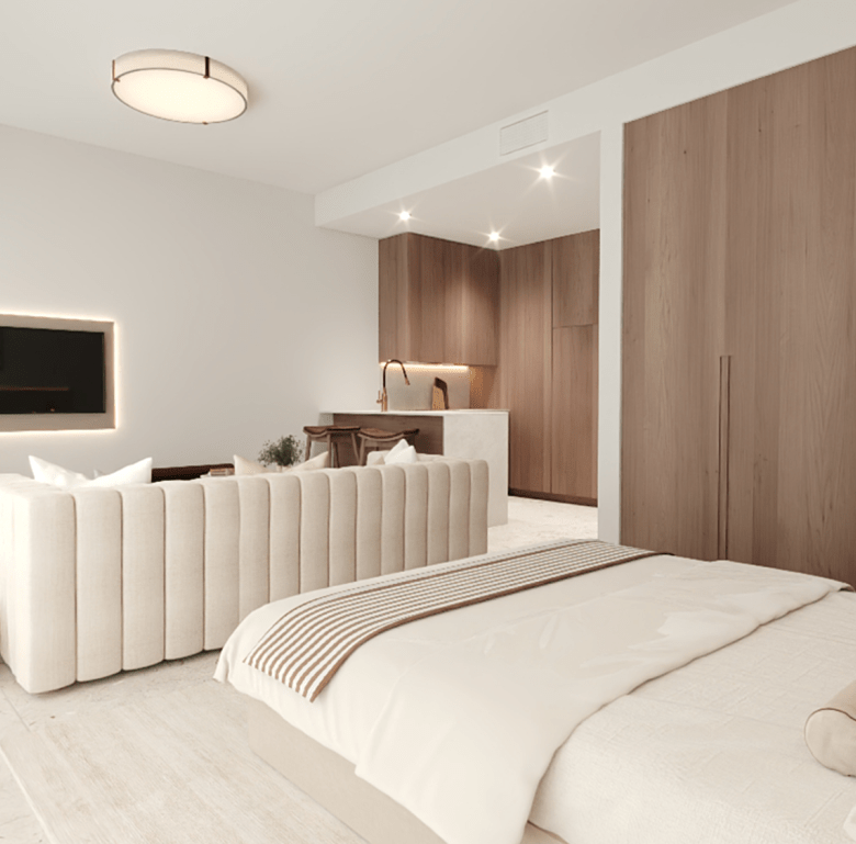 Set for completion by summer 2027, the Court will offer 104 meticulously designed, fully furnished apartments spread across two modern buildings. Ranging from cosy studios to spacious two-bedroom units, some apartments feature exclusive gardens or sea views, while all upper-floor units come with private rooftop terraces, complete with jacuzzis.