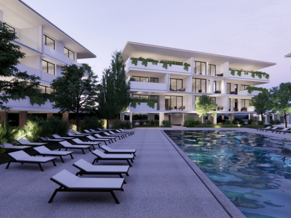 The development will be gated, providing residents with a level of security and exclusivity. Residents will have access to a wide range of luxury amenities including a spa, gym, lobby, concierge services, and 24-hour security. The project offers a variety of options for residents to relax and unwind, including lounging by the large communal pool with a separate pool for kids and a pool bar, as well as lounge areas. The development also includes green spaces with playgrounds for children and public landscaped areas.