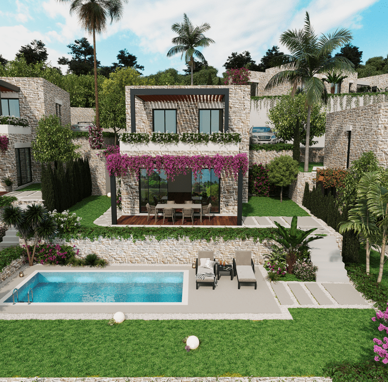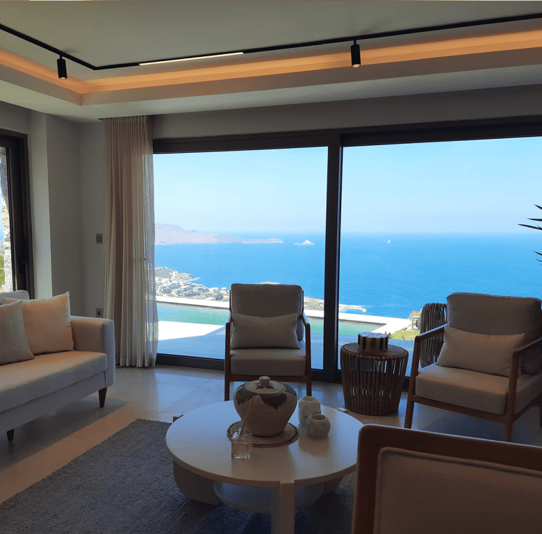 Each villa offers uninterrupted sea views, private pools, and dedicated parking, allowing you to savour the panoramic beauty of the Aegean from every corner—whether inside your home or in your private garden and pool area. With only 20 detached villas, crafted with premium materials and equipped with underfloor heating, the development guarantees both exclusivity and comfort. The thoughtfully designed architecture, lush landscapes, and elegant outdoor spaces create a perfect fusion of nature and luxury.