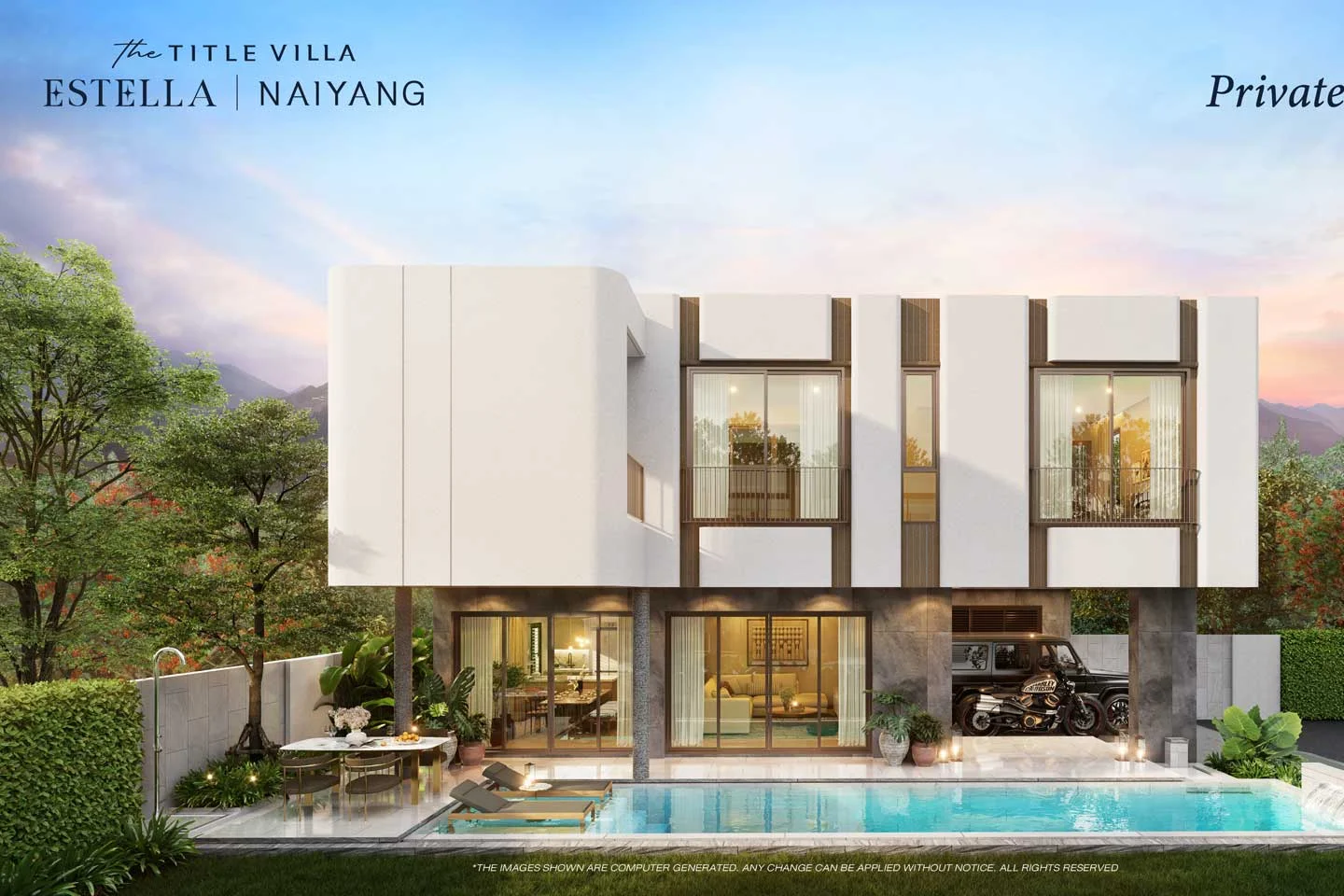 The Title Villa Estella Naiyang presents an exclusive collection of luxury pool villas, offering a harmonious blend of modern design and tropical tranquility. Situated just 600 meters from the pristine Naiyang Beach in Phuket, this development provides an unparalleled living experience for those seeking comfort, privacy, and proximity to nature. Project Overview Developer: Rhom Bho Property PLC Location: Sakhu, Thalang, Phuket Completion Date: 2026 Property Type: Two-story private pool villas Villa Features Each villa within The Title Villa Estella Naiyang is meticulously designed to cater to contemporary lifestyles while embracing the serene ambiance of its coastal surroundings: Spacious Layouts: Villas offer expansive living spaces, with configurations typically featuring 3 bedrooms and 4 bathrooms, encompassing approximately 252.5 square meters of built-up area. Private Swimming Pool: Each residence boasts a private swimming pool, providing an intimate setting for relaxation and entertainment. Modern Interiors: The interiors are thoughtfully crafted with high-quality materials and finishes, ensuring both aesthetic appeal and functionality. Outdoor Living: Generous outdoor areas, including terraces and landscaped gardens, enhance the tropical living experience, allowing residents to fully embrace Phuket’s natural beauty. Community Amenities The development is designed to offer a secure and comfortable environment for its residents: Security: Comprehensive security measures are in place to ensure the safety and peace of mind of all residents. Parking: Each villa includes dedicated parking spaces, accommodating multiple vehicles. Investment Opportunity The Title Villa Estella Naiyang represents a compelling investment in Phuket’s thriving real estate market: Pricing: Villas are competitively priced, with starting prices around THB 18,600,000, offering exceptional value for luxury living near the beach. Developer Reputation: Rhom Bho Property PLC is renowned for delivering high-quality developments, ensuring that your investment is backed by a trusted name in the industry. Conclusion The Title Villa Estella Naiyang offers an unparalleled opportunity to own a luxurious pool villa in one of Phuket’s most desirable locations. With its proximity to Naiyang Beach, thoughtfully designed residences, and comprehensive amenities, this development is ideal for those seeking a serene yet connected lifestyle. For more information or to schedule a private viewing, please contact us at ThaiEstate.