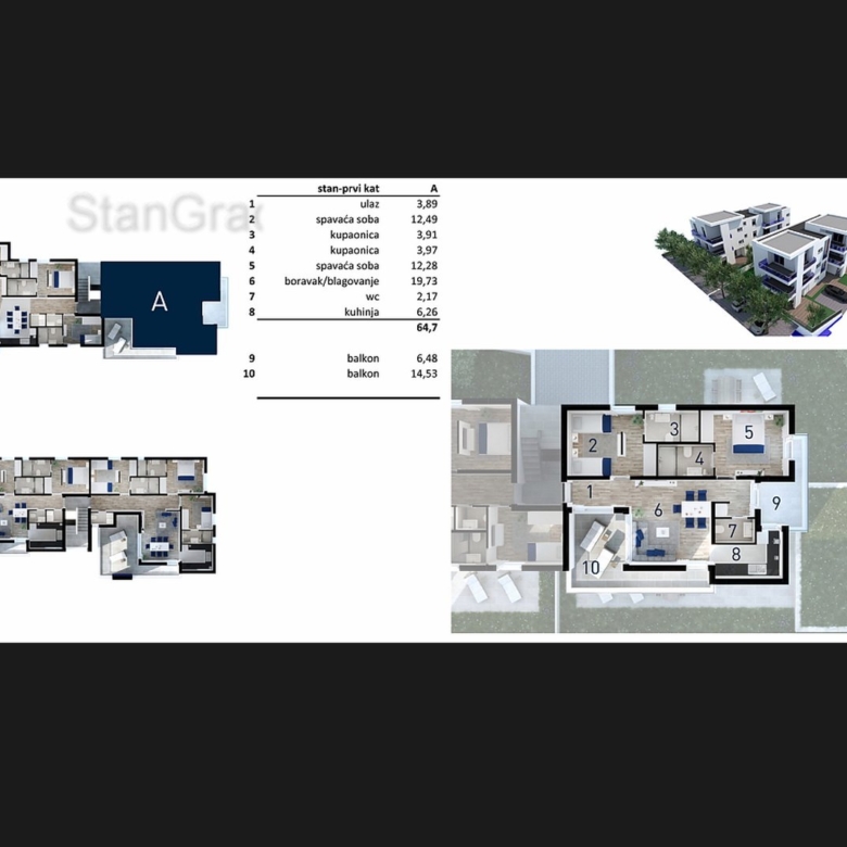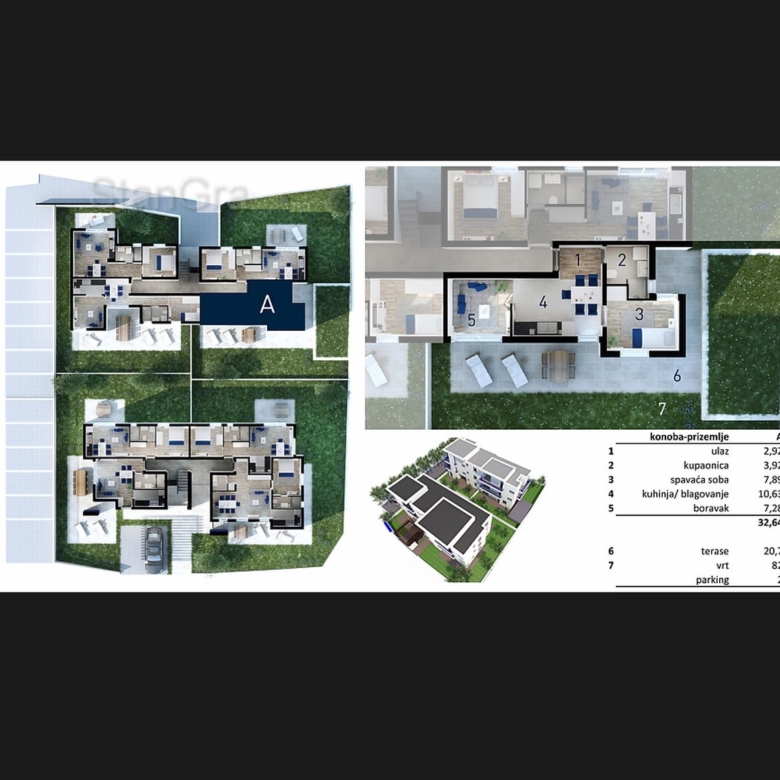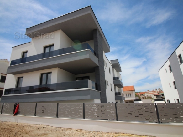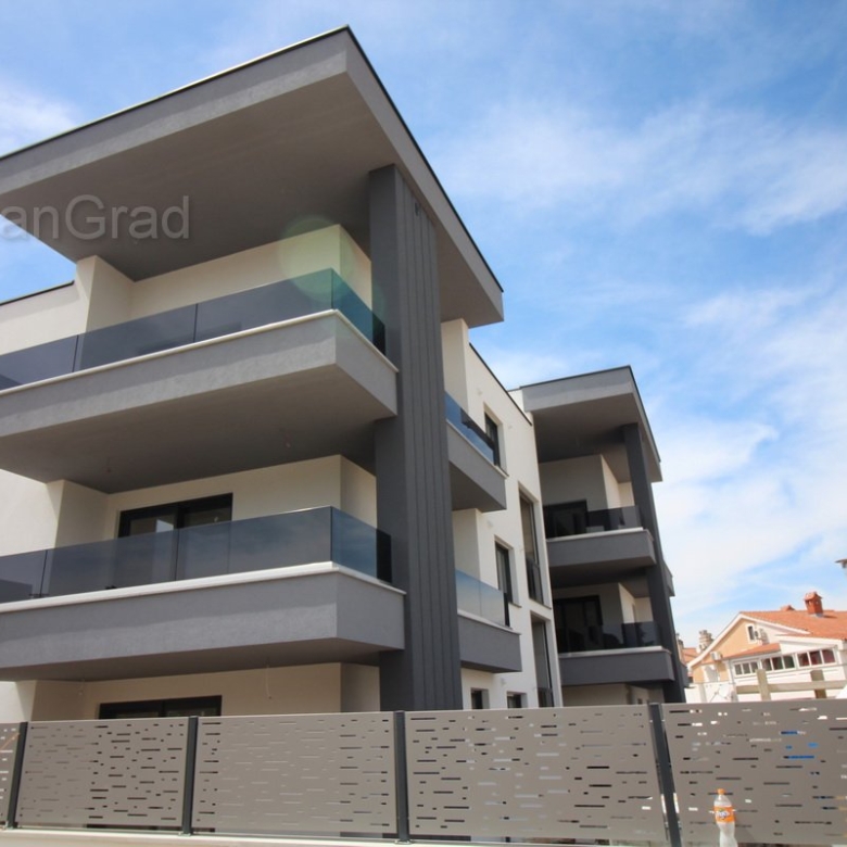 The town of Krk, in a good location 300 m from the sea, apartment for sale in a quality new building. This beautiful luxury apartment actually consists of two apartments, one on the 1st floor and one on the ground floor of a new building, and a landscaped and improved garden of approximately 56 m2 with two parking spaces. Larger apartment on the 1st floor of 98.38 m2 consists of a living room with kitchen and dining area, hallway, two bedrooms, two bathrooms, one toilet and two balconies of 6.48 m2 and 14.53 m2. The smaller ground floor apartment of 39.17 m2 consists of a living room with kitchen and dining area, bedroom, bathroom and terrace of 20.7 m2 and is directly connected to the garden. This functional concept allows new owners a view of the city of Krk from the first floor but also an intimate stay in the discreet green garden of its smaller ground floor apartment. Near this property there are all the necessary facilities for a pleasant vacation: beach, shop, promenade. The apartment will be equipped with air conditioning, pvc carpentry, security doors, underfloor heating in all rooms. This apartment is owned by a natural person, so the buyer is obliged to pay sales tax in the amount of 3% when transferring his ownership to his own name. We look forward to seeing you at the office address on the island of Krk. If you place your trust in us, the Stan Grad Immobilien agency will be happy to help you transfer the ownership rights to this property and the bill for its utility connections and services in your name.
