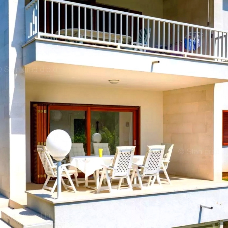 In a good offer of real estate agency Stan Grad Immobilien there is a super attractive house in the region of the Island of Krk. This exceptional house is located in a great location of a seaside town in the town of Krk near the sea and pine forest. Extremely attractive building consists of 4 floors. The property occupies a total area of 450 m2. The house has a total of four floors basement first and second floor and attic. A canopy of 72 m2 and a yard of a pleasant area of 372 m2 make this property an interesting investment. The renovation of the house in a modern style with a flat roof is currently underway and will be completed. The house has a very nicely decorated and refined garden. The spacious garden of the described property allows comfortable parking of several vehicles. In addition to all the above, it should be noted that the property has a beautiful open sea view. This property is owned by a natural person. The seller of the house guarantees proper ownership documentation and a quick transfer of ownership of the property. Agents of the Stan Grad Immobilien brokerage office will assist you in the purchase and transfer of home ownership.