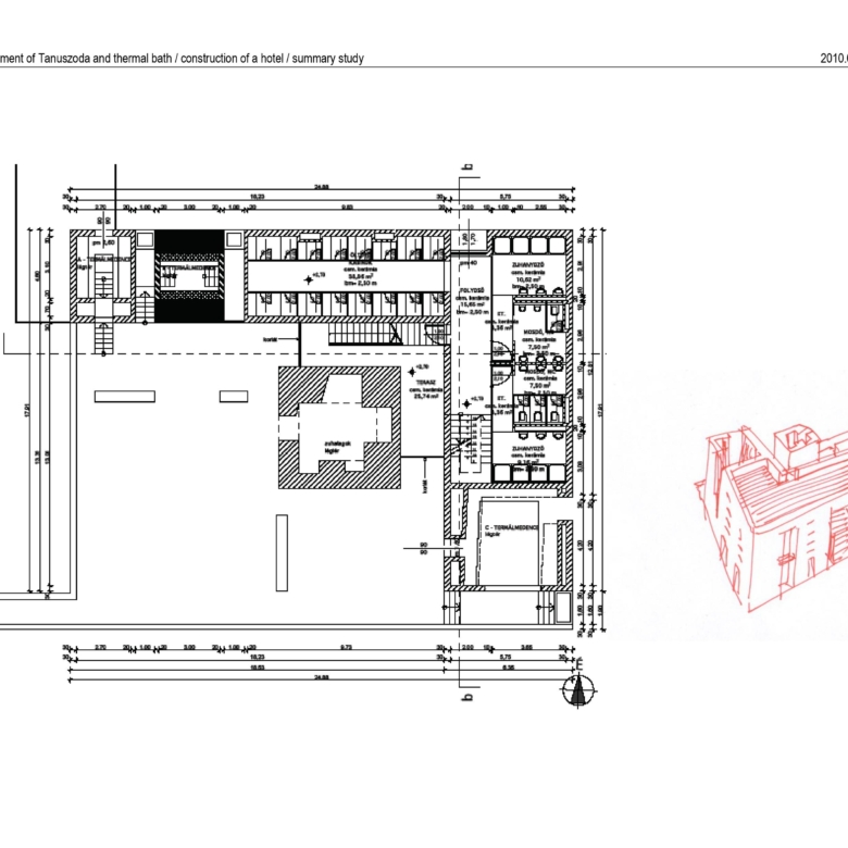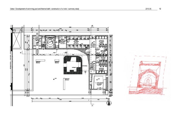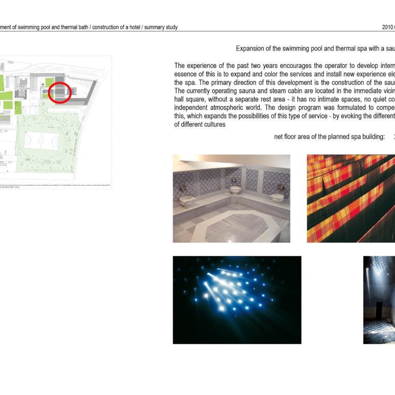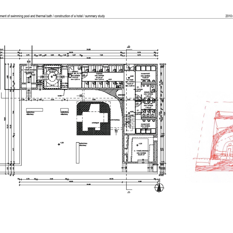 Standing in pristine condition despite its temporary closure, the spa boasts a sprawling net floor area of 2,873 square meters, situated upon a generous 21,233 square meter plot. This expansive space offers ample room for existing and potential future endeavors. With minimal investment compared to its inherent value, the spa can be swiftly brought back to life, welcoming guests seeking rejuvenation and well-being.