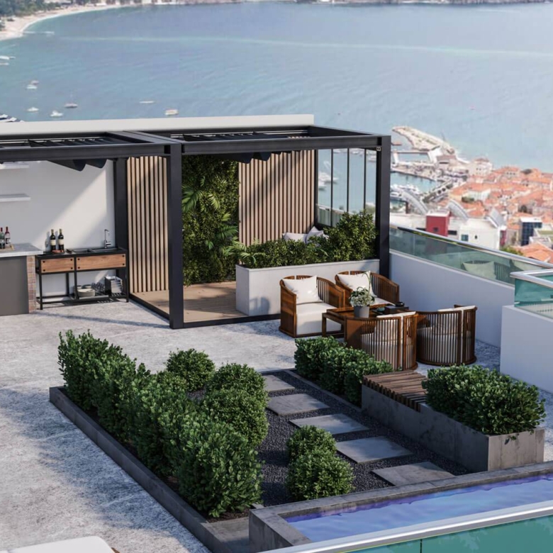 These stunning three-bedroom apartments for sale are located in the exclusive Aren Village residence buildings in the picturesque area of Komoševina, Budva. Renowned for its sandy beaches, charming Old Town, and luxurious marina, Budva is the Queen of the Mediterranean, offering the perfect blend of coastal living and modern convenience.Each apartment emphasizes quality and comfort and is designed to provide a privileged and tranquil lifestyle. The layout includes a kitchen with a dining area, three spacious bedrooms, and two bathrooms. Every unit boasts a terrace with breathtaking views of the sea and Budva’s historic Old Town, providing the ultimate Mediterranean experience. Kitchens and wardrobes are included in the price, and parking spaces are available for an additional cost. Apartments on the fourth floor have additional rooftop terraces with a summer kitchen area, barbeque, sunbed area, and a jacuzzi.Available Three-Bedroom Apartments:Building 1, A04: 111.21m², price 556.050€Building 2, S05: 100.92m² price 504.600€Building 2, S11: 109.18m² , price 545.900€Building 2, S11: 109.18m² + 99.11m² rooftop terrace , price 633.265€Building 2, S12: 100.92m²+ 96.74m² rooftop terrace , price 691.010€Located just 20 km from Tivat International Airport and 68 km from Podgorica Airport, these apartments offer excellent travel connections for those seeking a sophisticated coastal lifestyle.Don’t miss this chance to own a piece of Mediterranean paradise in Budva. Contact us today to schedule a viewing or learn more about making one of these apartments your home!