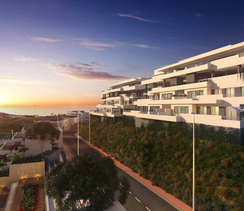 Stylish residential complex of 82 apartments in Mijas, built across two phases with terraced architecture that blends beautifully with the landscape. Its elevated position offers panoramic sea views, even from the raised ground-floor units, which sit 10 metres above street level.