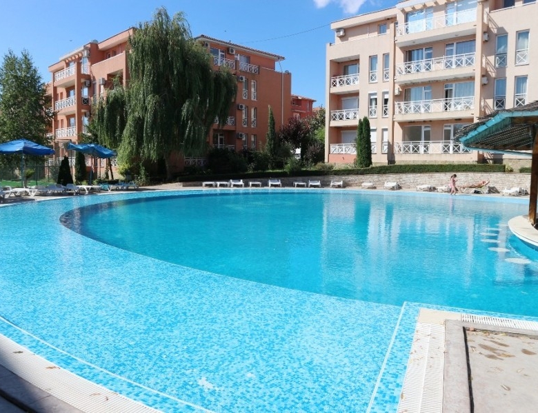 Top floor sunny apartment, 44 sq.m., in Sunny Day 6, 3 km from Sunny beach KC Properties is pleased to offer you this very sunny 1 BED apartment which has been recently renovated. The property is situated in Sunny Day 6 – a residential complex situated in the outskirts of Sunny beach resort, within 3 km to the sea coast. Nessebar town is 7 km away and Bourgas airport – 35 km away. On site facilities include: 5 outdoor pools, tennis-courts, mini-golf fields, outdoor sport facilities, restaurant, supermarket, free parking area, security, reception, regular shuttle service in the summer season. The apartment is situated on the 4th – top floor and has a total area of 44 sq.m. It comprises of: – Open-plan kitchen with lounge area; – one bedroom; – Shower-room/toilet; – Big terrace with access from both rooms. The apartment is offered unfurnished, so the new owner can furnish and decorate it according to their own needs. It is perfect vacation home, ideal for families with children and people who would like to enjoy peacefulness. Pet friendly area. Annual maintenance fee -580 EUR/year.