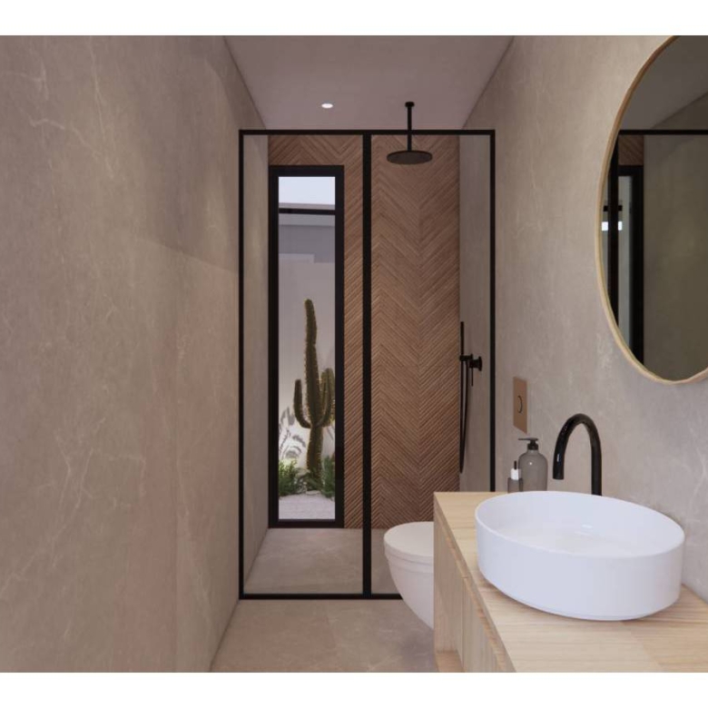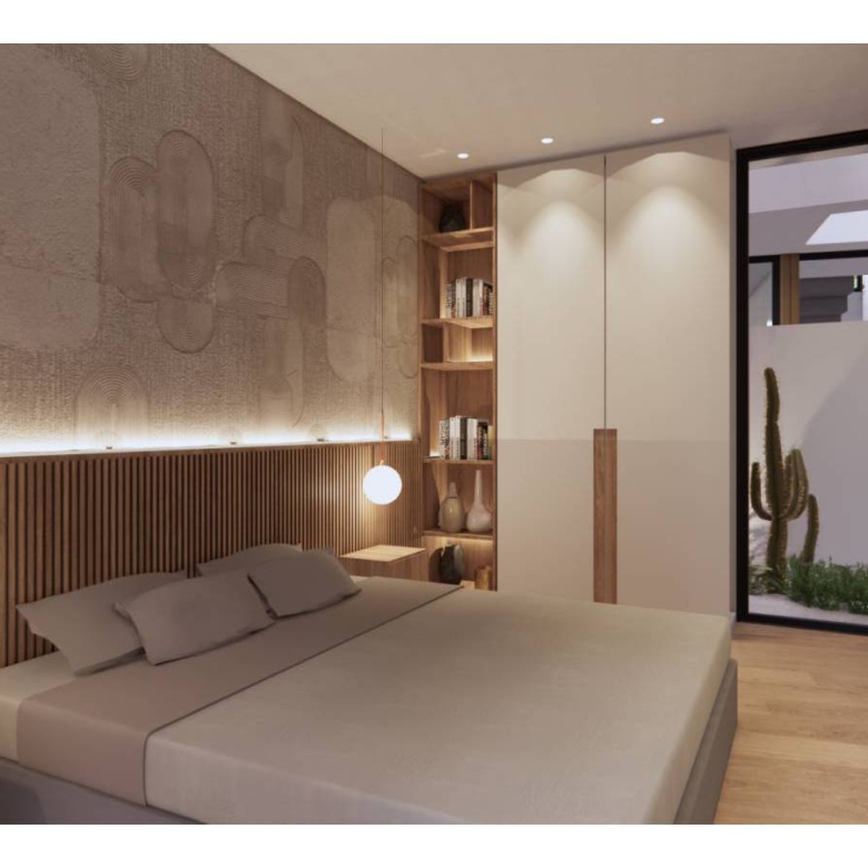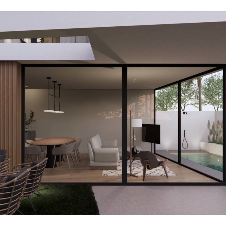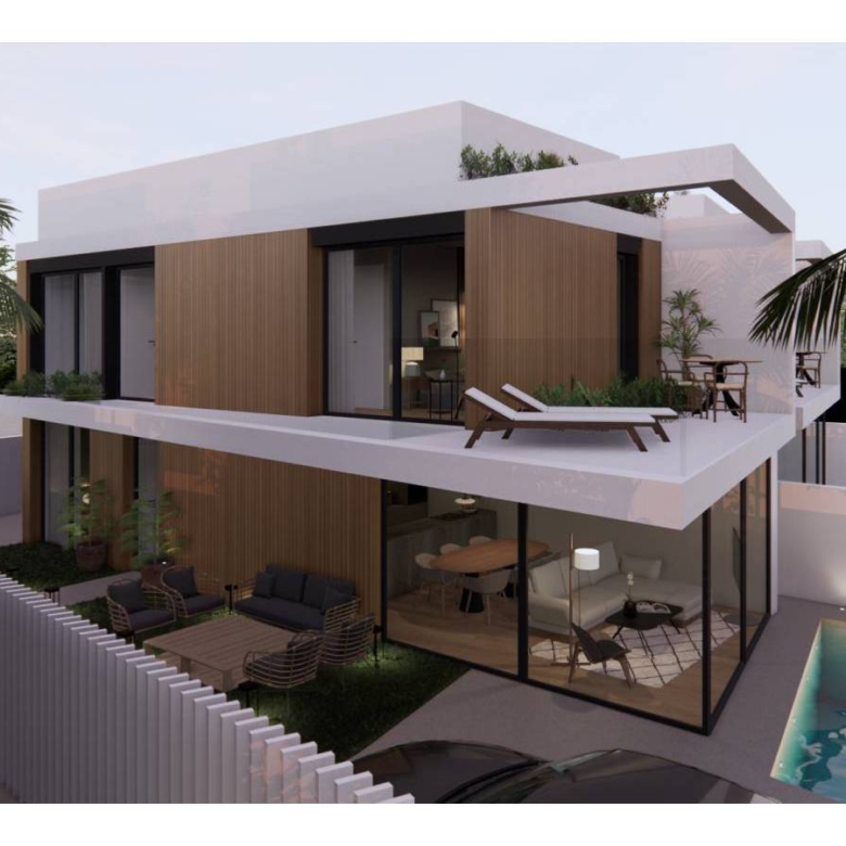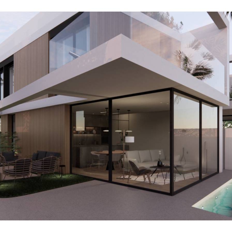 Villas for sale in Torre de la Horadada, Costa Blanca This exclusive set of 4 independent houses takes the idea of residential luxury to a new level, each with its own private pool and solarium. Each house has 3 bedrooms and 3 bathrooms. The pools, with their unique design. Its attractive tile finishes in white, gray and sand tones, together with the interior lighting, create a serene and enchanting aquatic setting. In addition, each pool is complemented by an outdoor shower. Inside, the rectified porcelain stoneware floors with a wood-effect finish enrich the spaces, while the concrete effect on the outside reflects a modern and sophisticated design. In addition, all the toilets have tiles from the renowned PORCELANOSA® brand. On the other hand, we have incorporated artificial grass on the plots and in the solariums, and pre-installed barbecues in the latter for those moments of relaxation in the open air. Every detail has been carefully designed to offer a luxurious and comfortable living environment. Property ID: GH-307607 Price: €580,000 Property Size: 154 m2 Land Area: 201 m2 Bedrooms: 3 Bathrooms: 3 Property Type: Villa Property Status: For Sale