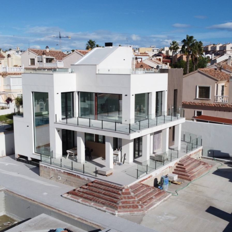 Villa for sale in Torrevieja, Costa Blanca The total area of the plot is more than 1000m2. The villa has a constructed area of 407 m2; and an interior living area of 335 m2. All are distributed on two floors with 4 bedrooms, 3 bathrooms, living room and open kitchen with dining room; as well as a 76m2 pool area, a paddle tennis court and an upper terrace with magnificent views of the Mediterranean coast. In the basement, there is a 125 m2 multipurpose area for your enjoyment. It consists of: 4 bedrooms3 bathroomsSpacious living roomlaundry areaOpen kitchen with dining roomAccessoriesLED lightinghigh quality finishindependent plotPrivate pool 76m2Basement 125m2Paddle court 216m2TerraceSolariumParking inside the plotPlot 1013m2 This house is located in Torrevieja, a coastal town in the province of Alicante, in the southeast of Spain. It is a very popular tourist destination in Europe, it receives more than 2 million visitors a year, which makes it an international place. Property ID: GH-307516 Price: €1,495,000 Property Size: 407 m2 Land Area: 1013 m2 Bedrooms: 4 Bathrooms: 3 Property Type: Villa Property Status: For Sale