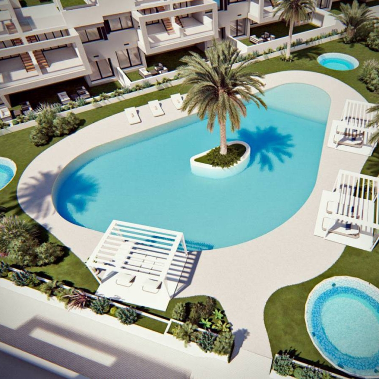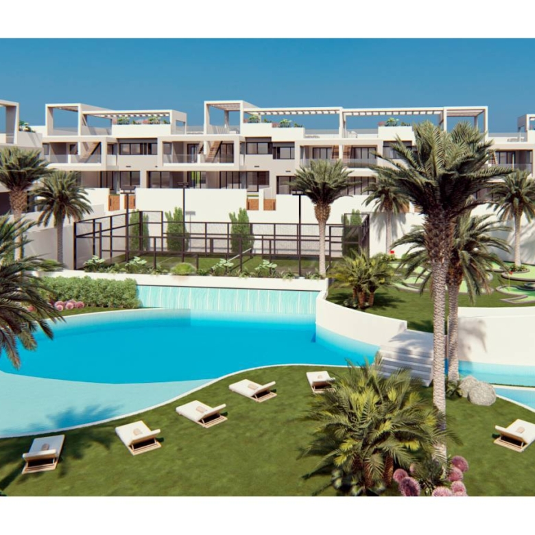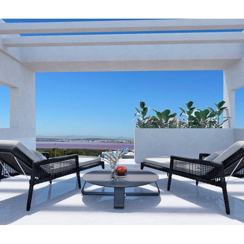 Bungalows in Torrevieja, Costa Blanca, Alicante Composed of 136 luxury homes built with top quality materials. Each one has magical views of the Laguna Rosa de Torrevieja and the Mediterranean Sea. The houses have more than 131m2 distributed in a spacious living-dining room with an open-plan kitchen, 2 large bedrooms and 2 full bathrooms. You can choose between ground floor bungalows with their 2 large private terraces to enjoy the climate of the Costa Blanca. Or first floor bungalows of 178m2 with its 85m2 solarium with panoramic views of the Laguna Rosa and the Mediterranean Sea Idyllic landscaped common areas with 3 swimming pool areas, Jacuzzi areas, fitness area, paddle tennis court, mini golf, children’s area, recharging point for electric vehicles and much more. Its Premium facilities and green areas will allow you to enjoy with your family and friends the 320 days of sunshine that the Costa Blanca offers. Property ID: GH-307319 Price: €259,900 Property Size: 131 m2 Land Area: 131 m2 Bedrooms: 2 Bathrooms: 2 Property Type: Apartment Property Status: For Sale