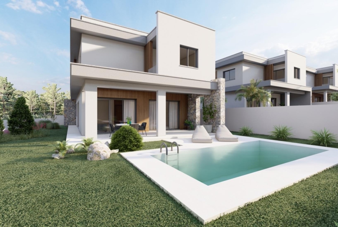 Set amidst the peaceful ambiance of pine trees and overlooking the Akrotiri Coastline, this house in Souni offers rural tranquility while remaining just a 10 minute drive from Limassol’s lively city center. Drawing inspiration from Mediterranean architecture, these villas are situated on expansive plots and delightful barbecue spaces, harmonizing a serene escape with contemporary comforts.