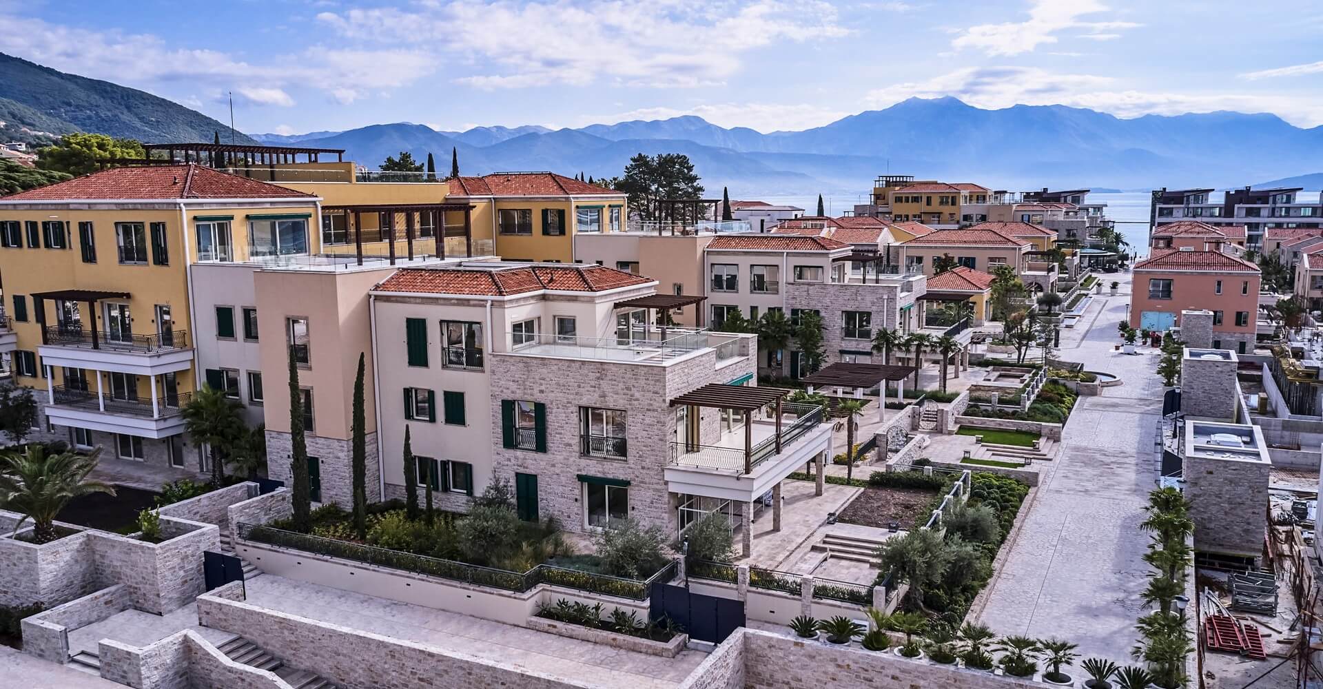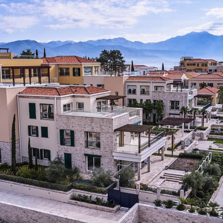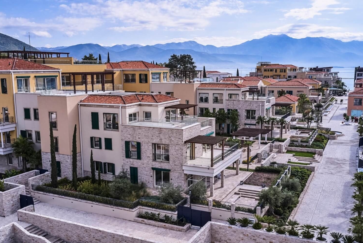 These two-bedroom apartments for sale are located in Kumbor – Herceg Novi, in the modern new developmentPortonovi. This world-class resort, complete with a state-of-the-art marina serving mega yachts (with fuel taxes rebates up to 40%) and the first European location from global hoteliers “One&Only”, is the Adriatic’s most sophisticated new destination.The feel of the Village Residences is the traditional Mediterranean, with a combination of textured Montenegrin vernacular and Venetian styling. Residents can choose from a characterful range of low-rise apartments, penthouses, and townhouses in individual zones interwoven with landscaped pathways, all with light and elegant interior spaces and fitted out for modern comfort and functionality with valet parking. Juliette balconies, balconied windows, and sheltered terraces make the most of the Village neighborhoods and beautiful views, while also offering the right amount of privacy.Sculptural trees and fragrant shrubs, calmly running water features and hidden alcoves evoke an atmosphere of tranquility, while elegant stores, kiosks, and brasseries provide plenty to engage the senses and ways to spend the time. There are two parks to enjoy, private and communal swimming pools, and numerous meandering pathways or waterfront promenades — perfect for a leisurely afternoon stroll.Showcasing an innovative authenticity, Village Residences remain loyal to Boka Bay’s signature while offering contemporary flair for modern buyers. The mix of high-end design and high-quality materials, combined with outstanding outdoor space and breathtaking views, transmits an air of sophisticated luxury.The apartments consist of a large open-plan living room with a dining area and a kitchen, two bedrooms with a bathroom, and a guest toilet. Two-bedroom apartments in Village Residences rangefrom 162m² up to 229m²and arepriced from €1,105,000 to €1,300,000.Created by renowned London designers “The Studio Harrods”, apartments in The Village feature an elegantly simple style, with brushed oak flooring throughout the living area. You can expect quality materials and tasteful flourishes throughout, with custom-made wardrobes, tiled bathroom feature walls, and a Smart Home System to control HVAC and underfloor heating.A five-star concierge service is available around the clock to take care of your every need, including organizing bespoke itineraries, providing domestic care and maintenance, and arranging a taxi, water taxi, and helicopter services. Experienced and professional, the team speaks more than 15 languages, with the expertise to take care of every guest and homeowner.Portonovi resort is located at the entrance of the Boka Bay, only 17km away from the international airport Tivat and 35km from the international airport Dubrovnik, Croatia. From these apartments to the Old Town Kotor which is under UNESCO protection is less than 36km. The capital of Montenegro and airport Podgorica are 140km away.With a bayside location sheltered by the neighboring mountains, these bespoke apartments offer contemporary design and intimate waterfront living, with great rental potential, and are an excellent investment opportunity. If you like these extraordinary apartments, feel free to contact us for more information about availability.