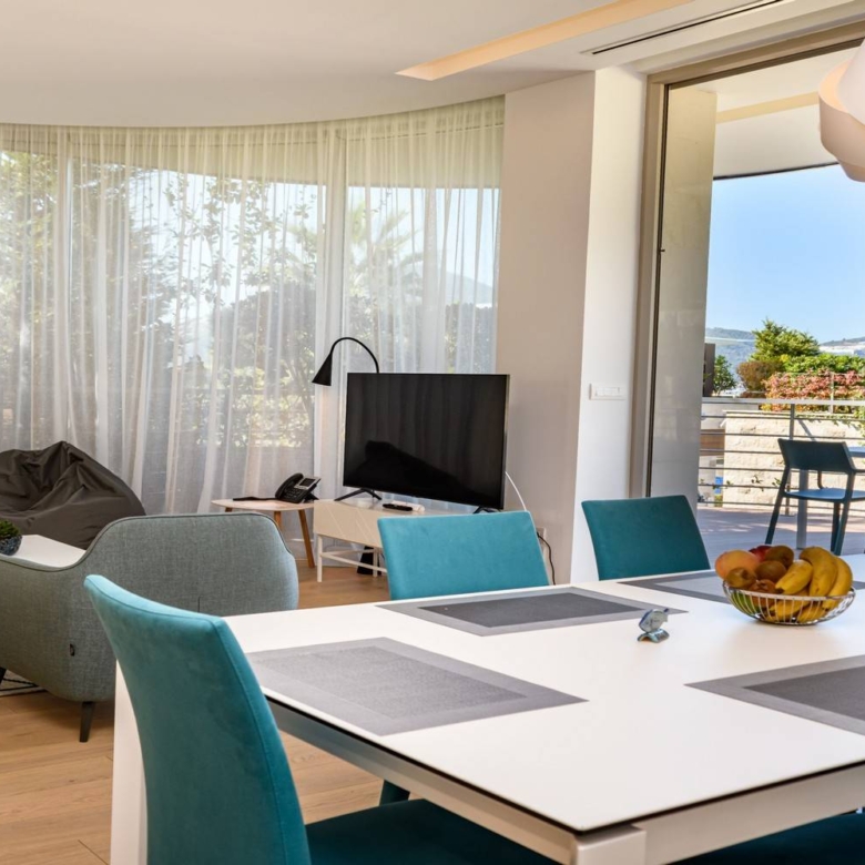 This two-bedroom apartment for sale is located in the heart of Montenegro’s bustling Budva riviera, in Dukley Gardens residential development. This lushly landscaped, waterfront community, set against the charming Old town of Budva, is oriented towards the sea for premium coastal views and is an elegant new paradigm for modern waterfront living.Each residence in Dukley Gardens is enhanced with generous outdoor living space and constructed to the highest international standards, featuring premier finishings, from built-in kitchens and luxury fixtures through high-end appliances and designed with extraordinary attention to quality and detail.The apartment area is 147m² and it consists of a living room, a kitchen with a dining room, two bedrooms, two bathrooms, and a terrace. The apartment is fully furnished and ready to move in. It is equipped with modern top-designed furniture, Poliform built-in kitchen, Miele appliances, Villeroy & Boch, Dornbracht kitchen and bath fixtures, and superior finishes. The apartment has a very nice garden lane view.Wired for complete security with state-of-the-art, Smart Home technology, this residence may be controlled remotely through the homeowner’s device. Each property’s lighting and climate controls, as well as, multi-media systems, home security, and surveillance systems, are easily regulated via smartphone or tablet.Dukley Gardens prizes privacy and avoids the constant flow of non-residents milling about. Offering all the premier amenities of a five-star hotel, Dukley provides exceptional personal assistance to its residents. The benefits of residency are:24-hour Concierge & SecuritySecure, Private & Valet ParkingPrivate Car Service: local transportation and airport transfersCoordination of Car, Motorcycle, and Boat rentals as well as tours & excursionsMooring for boats up to 70 meters at the 300-berth Dukley MarinaWater Shuttle Service to Budva, Oldtown, and Dukley MarinaA Fleet of Golf Carts within the complex for deliveries and transportationState-of-the-art Smart Home Security SystemsReal estate & Property insuranceChildren’s Centre, Summer Camp, Kindergarten, Child Care ServicesFitness & Wellness FacilitiesSandy, Fully Serviced, Beach FrontPrivate PoolWater Sports equipment & rentalHousekeeping & Laundry ServiceRoom Service from Dukley Gardens in-house kitchen or the Dukley Beach LoungeStylish dining and drinks VenuesWaterfront Beach ClubCatering & Event ManagementProperty & Rental Management ServicesPrivate Online account: Secure web line for communication, remote operation, and electronic document storage.For those homeowners seeking a regular return on their investment, Dukley Gardens offers a professional, year-round, property management program. Overseeing short and long, term rental arrangements, Dukley’s full-service, on-site team supervises every detail from marketing and booking through airport transfers, key handovers, security, and maintenance.Dukley Gardens uses the full advantage of its privileged location on the Zavala peninsula, in the center of Montenegrin tourism in Budva. Well positioned, this development is only 27km away from Tivat international airport and 65km from the airport in Podgorica, the capital of Montenegro.If you believe that this nice apartment could be the right choice for your new home, feel free to contact us for more information.