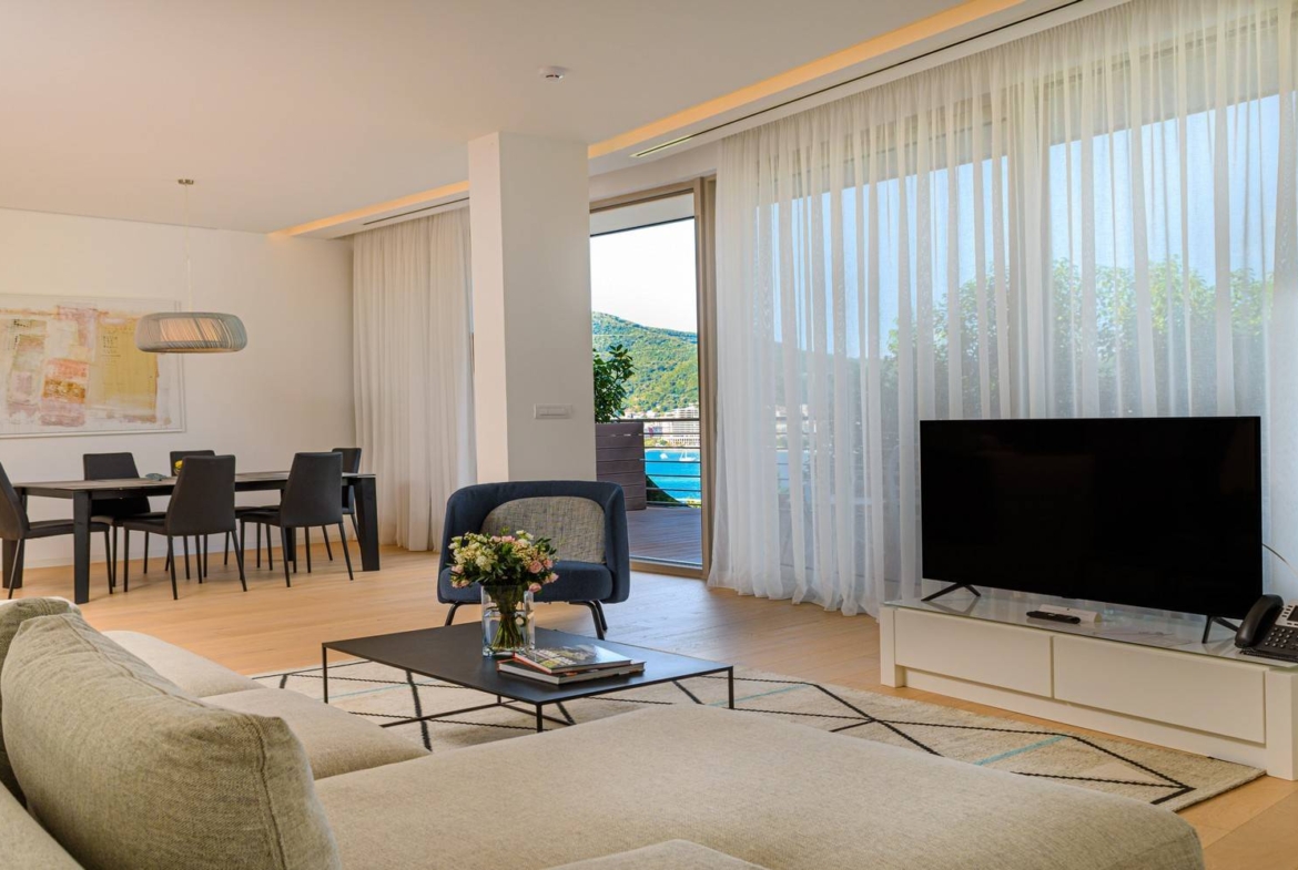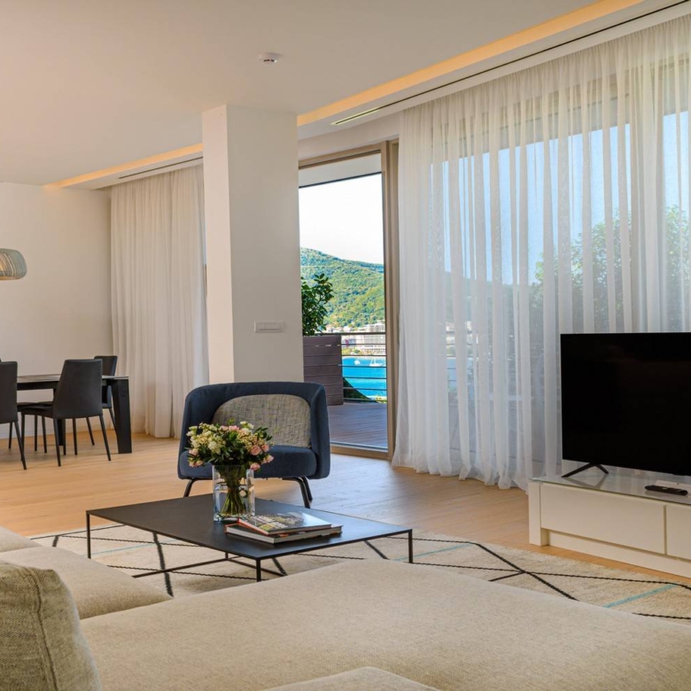 This nice two-bedroom apartment for sale is located in the heart of Montenegro’s bustling Budva riviera, in Dukley Gardens residential development. This lushly landscaped, waterfront community, set against the charming Old town of Budva, is oriented towards the sea for premium coastal views and is an elegant new paradigm for modern waterfront living.Each residence in Dukley Gardens is enhanced with generous outdoor living space and constructed to the highest international standards, featuring premier finishings, from built-in kitchens and luxury fixtures through high-end appliances and designed with extraordinary attention to quality and detail.The apartment area is 172m² and it consists of an open-plan living room, a kitchen with a dining room, two bedrooms with bathrooms, a wardrobe, and terraces. The apartment is fully furnished and ready to move in. It is equipped with modern top-designed furniture, Poliform built-in kitchen, Miele appliances, Villeroy & Boch, Dornbracht kitchen and bath fixtures, and superior finishes. The apartment is in the garden line and has a sea and a mountains view.Wired for complete security with state-of-the-art, Smart Home technology, this residence may be controlled remotely through the homeowner’s device. Each property’s lighting and climate controls, as well as, multi-media systems, home security, and surveillance systems, are easily regulated via smartphone or tablet.Dukley Gardens prizes privacy and avoids the constant flow of non-residents milling about. Offering all the premier amenities of a five-star hotel, Dukley provides exceptional personal assistance to its residents. The benefits of residency are:24-hour Concierge & SecuritySecure, Private & Valet ParkingPrivate Car Service: local transportation and airport transfersCoordination of Car, Motorcycle, and Boat rentals as well as tours & excursionsMooring for boats up to 70 meters at the 300-berth Dukley MarinaWater Shuttle Service to Budva, Oldtown, and Dukley MarinaA Fleet of Golf Carts within the complex for deliveries and transportationState-of-the-art Smart Home Security SystemsReal estate & Property insuranceChildren’s Centre, Summer Camp, Kindergarten, Child Care ServicesFitness & Wellness FacilitiesSandy, Fully Serviced, Beach FrontPrivate PoolWater Sports equipment & rentalHousekeeping & Laundry ServiceRoom Service from Dukley Gardens in-house kitchen or the Dukley Beach LoungeStylish dining and drinks VenuesWaterfront Beach ClubCatering & Event ManagementProperty & Rental Management ServicesPrivate Online account: Secure web line for communication, remote operation, and electronic document storage.For those homeowners seeking a regular return on their investment, Dukley Gardens offers a professional, year-round, property management program. Overseeing short and long, term rental arrangements, Dukley’s full-service, on-site team supervises every detail from marketing and booking through airport transfers, key handovers, security, and maintenance.Dukley Gardens uses the full advantage of its privileged location on the Zavala peninsula, in the center of Montenegrin tourism in Budva. Well positioned, this development is only 27km away from Tivat international airport and 65km from the airport in Podgorica, the capital of Montenegro. If you like this beautiful apartment and believe that it could be the right choice for your new home, feel free to contact us for more information.