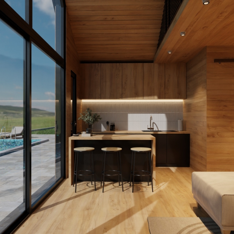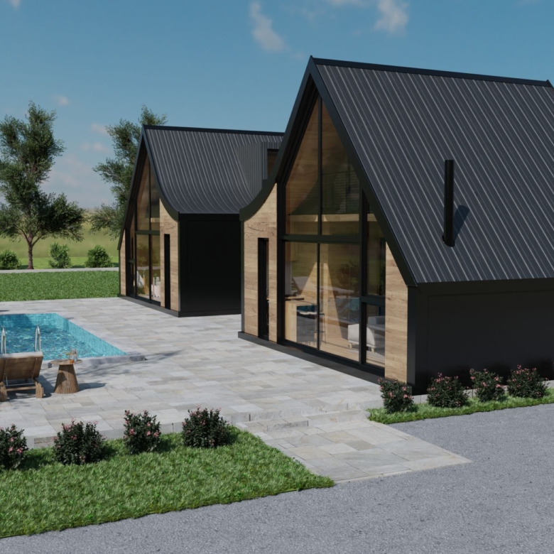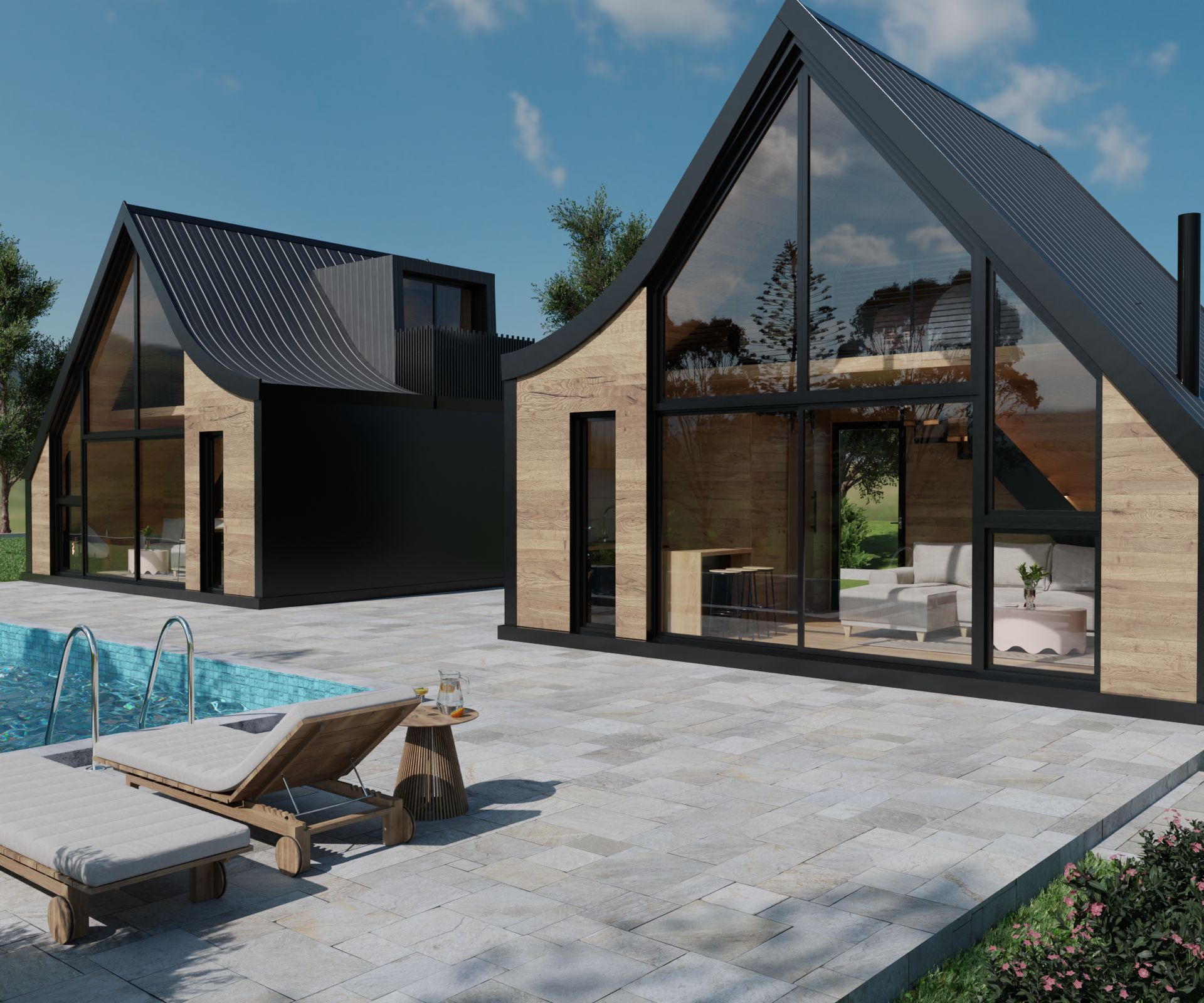 The project centers on the construction of two identical, meticulously designed holiday homes, each with a net size of 49 m2. While the net footprint is compact, the design is optimized for efficiency, style, and luxurious comfort, tailored to the demands of the modern tourist market.