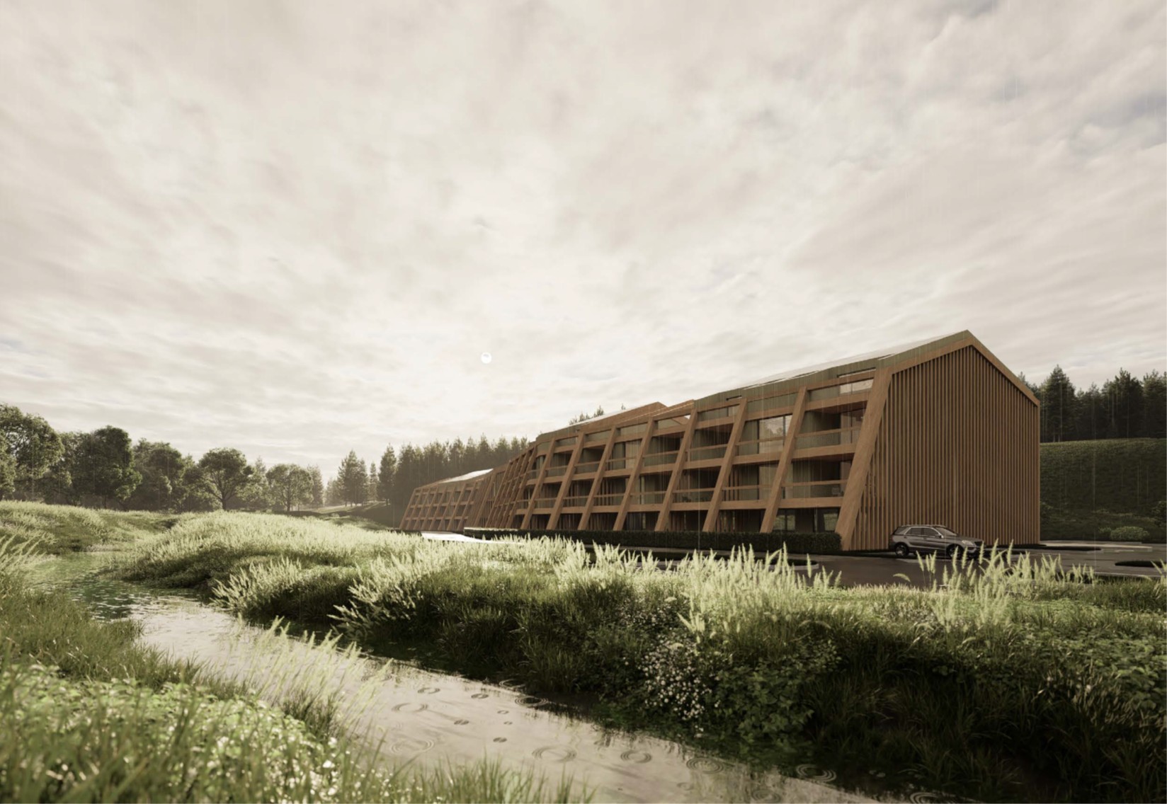 Designed with open and covered parking, storage units, loggias/terraces, children’s playroom, ski/bike storage, landscaped park and green zones