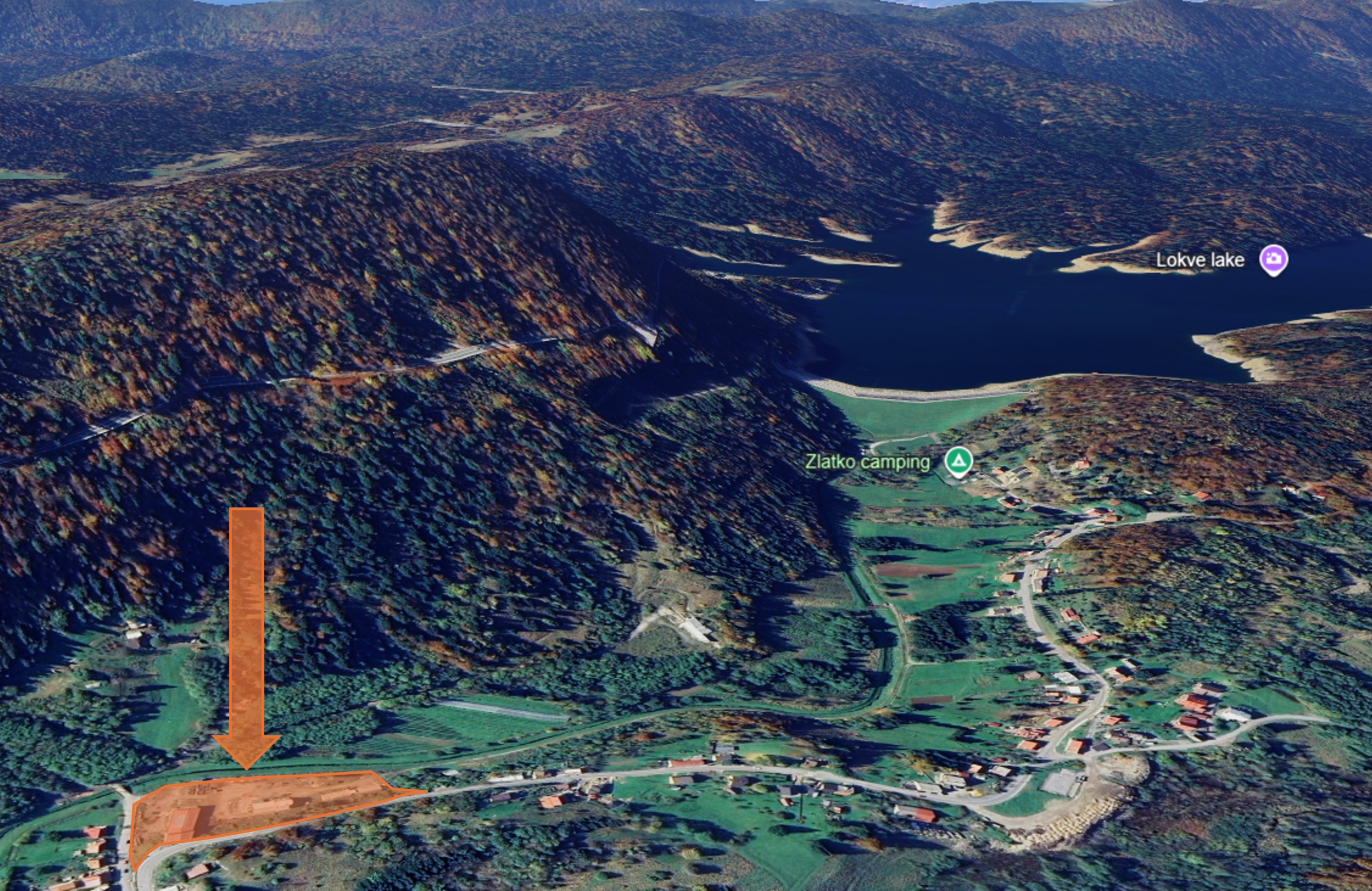 - Lake Lokve – only 800 m from the plot, ideal for swimming, fishing, and recreation