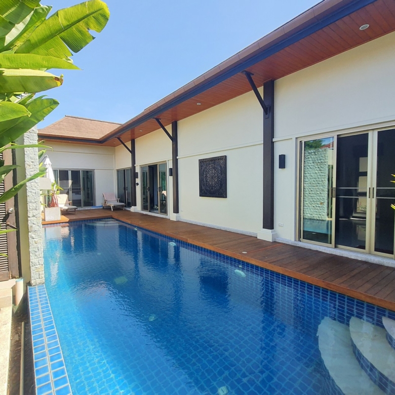 Exclusive Tranquility in One of Phuket’s Most Established Estates Discover an exquisite 4-bedroom, 4-bathroom private pool villa in the sought-after Two Villas Kokyang Estate, located in the serene area of Nai Harn, Phuket. Designed for luxurious tropical living, this elegant home offers spacious interiors, high-end finishes, and an idyllic outdoor retreat, making it perfect for both residential living and a lucrative investment opportunity. Property Highlights ✔ Generous Living Space – This expansive villa features a well-designed open-plan living and dining area with high ceilings and large glass doors that seamlessly blend indoor and outdoor spaces.✔ Four Spacious Bedrooms – Each ensuite bedroom is beautifully designed with contemporary furnishings, ample natural light, and direct access to terraces or garden views.✔ Fully Equipped Western Kitchen – The modern kitchen is fitted with high-quality appliances, a breakfast bar, and ample storage, perfect for home chefs and entertaining guests.✔ Private Infinity Pool & Lush Garden – The inviting private pool is surrounded by a sun deck, beautifully landscaped gardens, and a covered sala, providing a perfect setting for relaxation or social gatherings.✔ Secure & Exclusive Community – Located in the gated Two Villas Kokyang Estate, offering 24-hour security for ultimate peace of mind. Great Location – Convenience & Serenity Situated in Nai Harn, one of Phuket’s most prestigious and peaceful neighborhoods, this villa offers easy access to top-tier amenities: Nai Harn Beach & Rawai Beach – Just a short drive to Phuket’s most stunning beaches Fine Dining & Cafés – Close to international restaurants, beach clubs, and coffee shops Shopping & Essentials – Minutes from convenience stores, supermarkets, and local markets International Schools – Easy access to world-class education options✈ Phuket International Airport – Approximately 50 minutes away for seamless travel A Smart Investment Opportunity With its prime location, luxurious features, and proven rental demand, this villa offers exceptional value for investors looking for strong rental returns or long-term appreciation in Phuket’s thriving property market. Asking Price: THB 19,900,000 Contact us today to schedule a private viewing of this stunning villa!