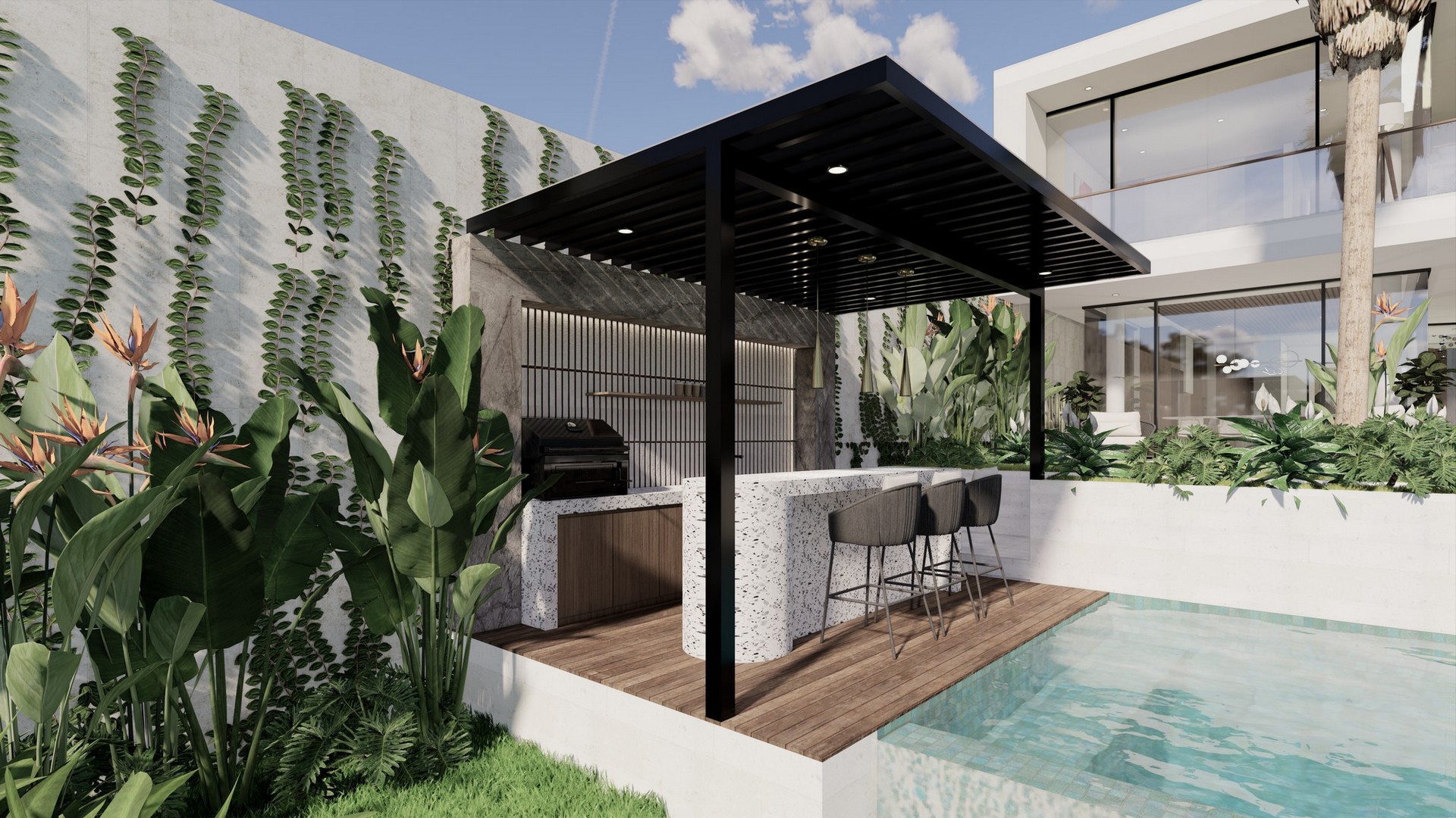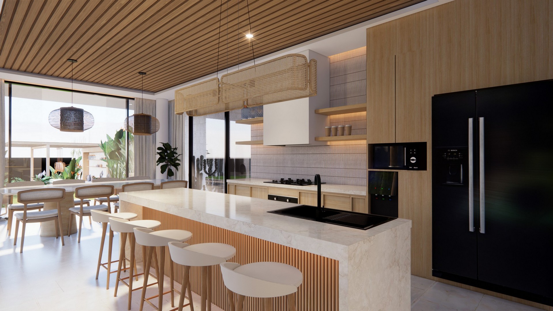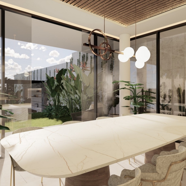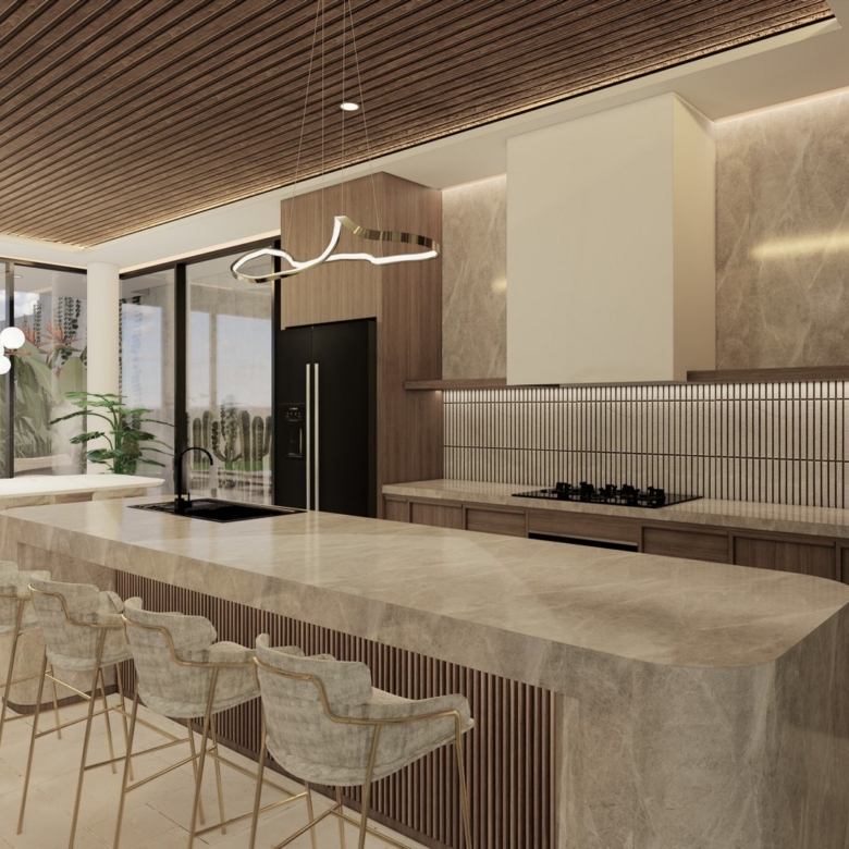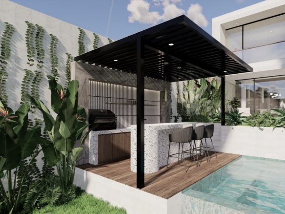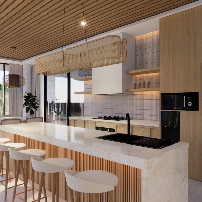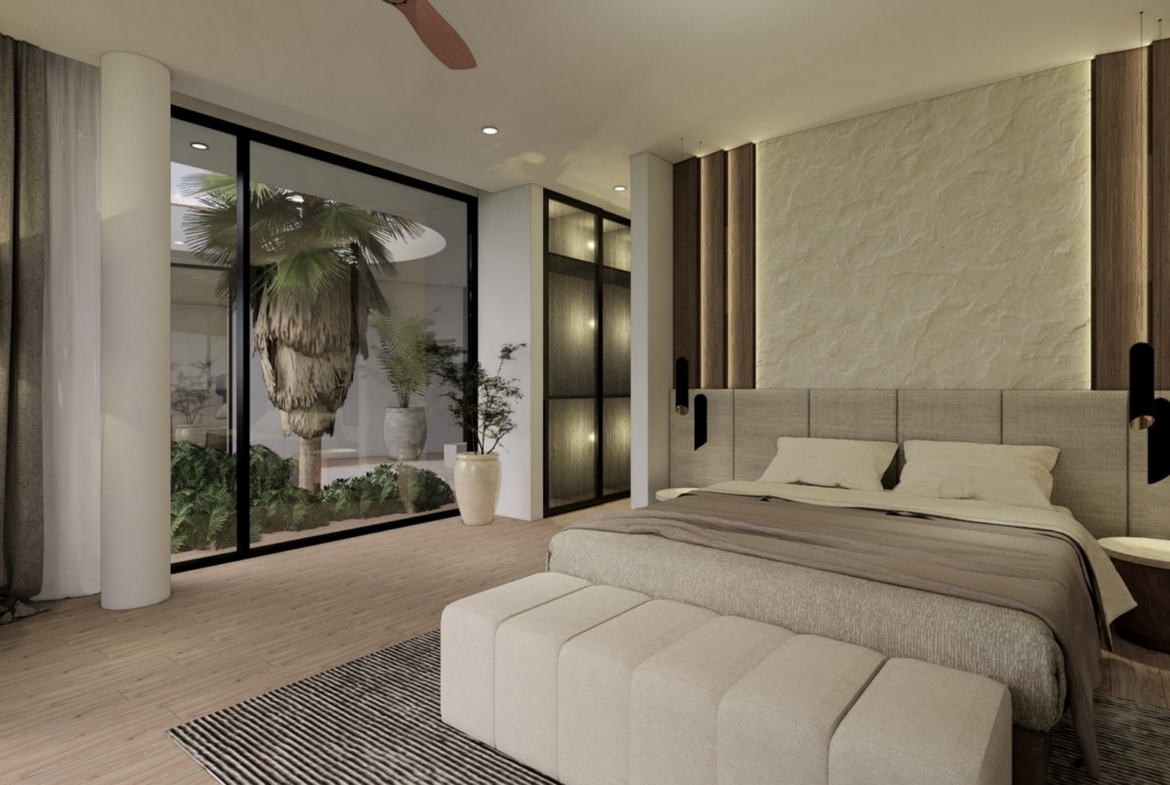 The stylishly designed FREEHOLD villa is scheduled to be completed at the end of 2024. Located in the established neighbourhood of Umalas – home of million-dollar properties, popular with expats and tourists alike. Plenty of cafes, restaurants and shops can be found in this charming area that has a friendly village feel. This villa is close to International Schools (Canggu, French, Montessori & Pro Ed) and is also minutes away from Berawa and Batu Belig beaches. Chic Seminyak and trendy Canggu are a short drive away. There is also a 10-minute shortcut that brings you conveniently to Berawa.