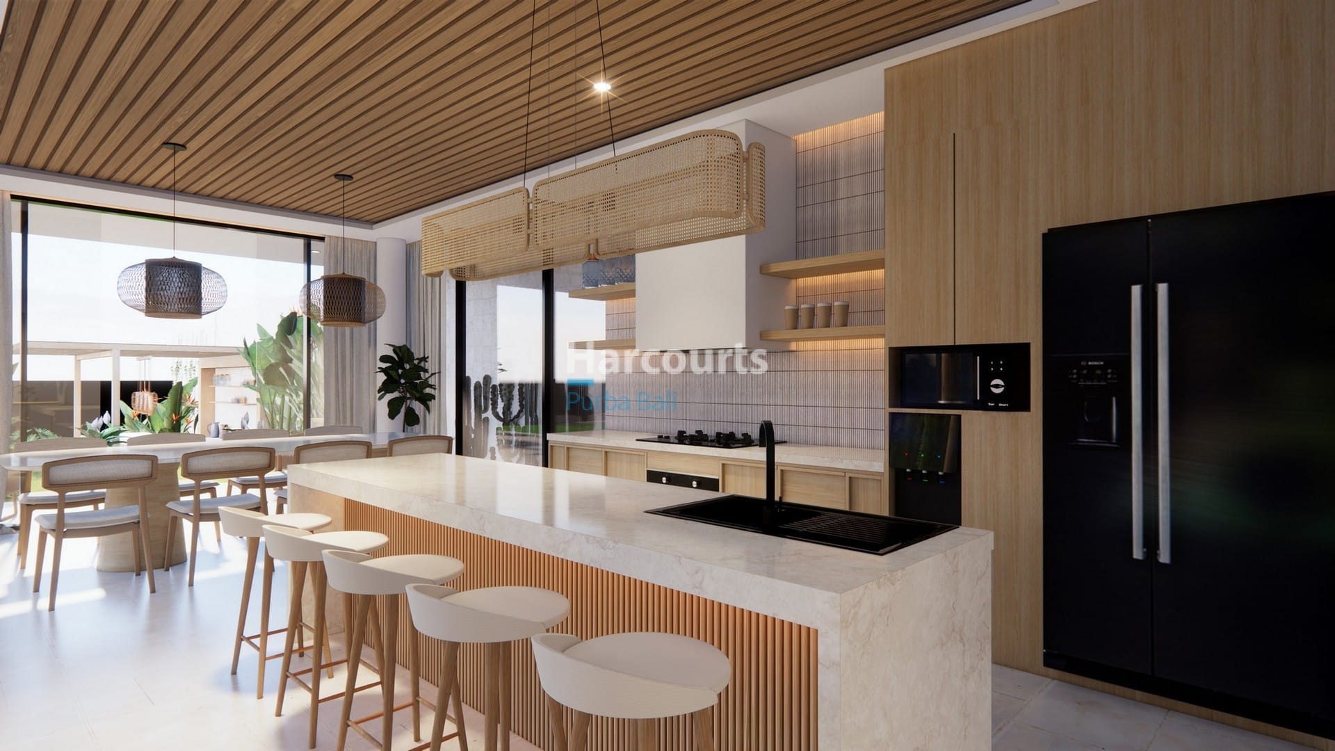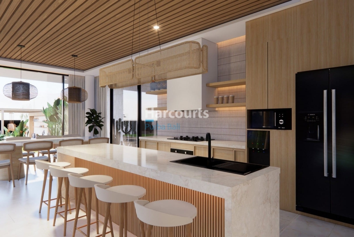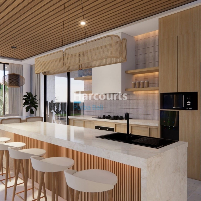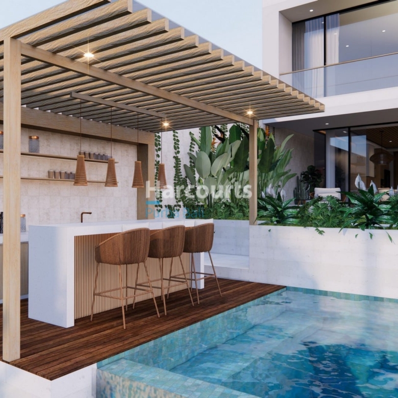 The stylishly designed FREEHOLD villa is scheduled to be completed at the end of 2024. Located in the established neighbourhood of Umalas – home of million-dollar properties, popular with expats and tourists alike. Plenty of cafes, restaurants and shops can be found in this charming area that has a friendly village feel. This villa is close to international Schools (Canggu, French, Montessori & Pro Ed) and is also minutes away from Berawa and Batu Belig beaches. Chic Seminyak and trendy Canggu are a short drive away. There is also a 10-minute shortcut that brings you conveniently to Berawa.Set on 579 sqm of land and occupying a building size of 380 sqm, the fully furnished villa features 4 elegantly designed bedrooms with ensuite bathrooms. The expansive living area exudes modernity, seamlessly connected to the stylish kitchen and dining area. The highlights of this property include the roof top entertainment space, cinema room, large inviting swimming pool area featuring a jacuzzi and trendy pool bar. The villa also has a guest powder room and a carport for 2 cars.This modern property is ideally suited as a family residence or simply a great investment decision in an area which will definitely see continued growth and demand.Nearby: ProEd Global School 1 km, Kembali Bumbak Restaurant 1 km, Liga Tennis Center & Academy 1 km, Finns Recreation Club 1.2 km, Bali Buda Cafe 1.5 km, Finns Beach Club 2.2 km, Berawa Beach 2.5 km.