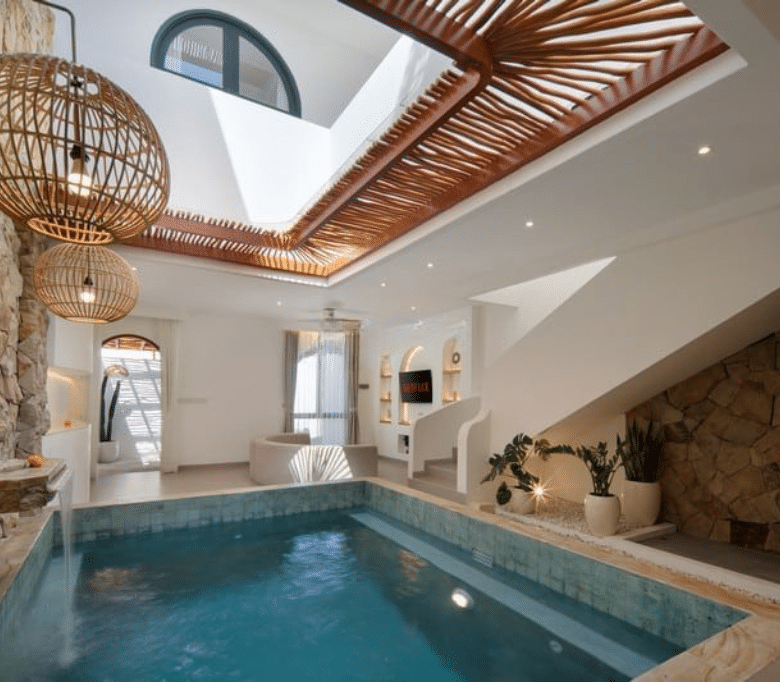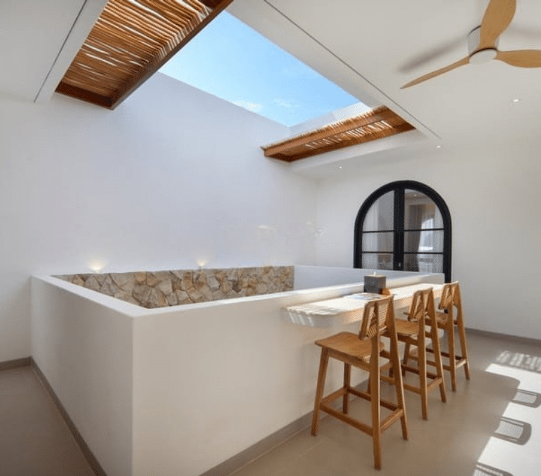 Spanning 112 sqm of land and boasting a 162 sqm living space, the villas feature a unique design with a semi-indoor plunge pool strategically placed between the living area and kitchen. This distinctive layout not only adds to the villa’s charm but also makes it an ideal choice for holiday rentals.