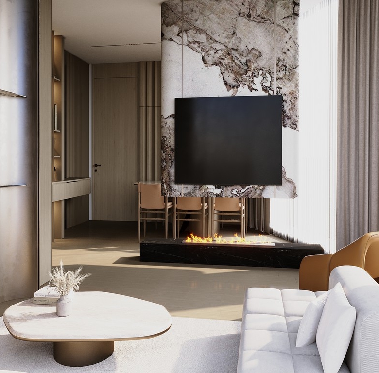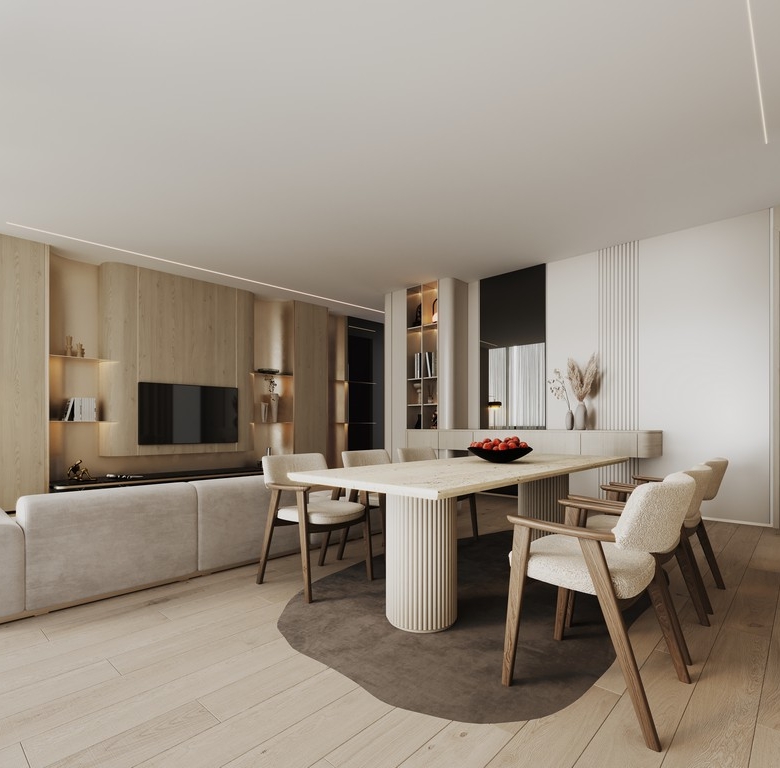 Living/Dining Area: Open-plan designs with large windows for ample natural light and breathtaking city views
