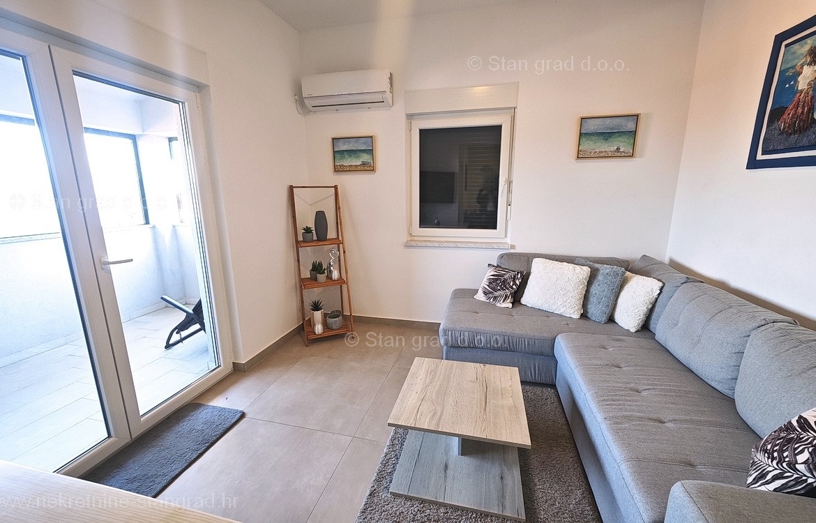 Within the wide range of real estate offered by the Stan Grad Immobilien agency, a very good and well-decorated tourist apartment is for sale in the sought-after Mediterranean Adriatic destination, the island of Krk. This apartment is located in a very good location in Uvala Soline, near the center, the sea and all facilities necessary for a comfortable, pleasant and safe summer vacation. According to the type of property, this is a medium-sized one-story apartment. In a very good and quality building, the apartment is located on the 2nd floor. The total area of this apartment is 61 m2. Inside the mentioned area are living room and kitchen, 2 bedrooms, bathroom and balcony. The well-maintained interior of the property is fully furnished with quality furniture and all the necessary technical equipment. The owner of the apartment can use all the common parts and spaces of the property without hindrance. The area of the apartment’s yard gives the possibility of comfortable parking for one car. In addition to the properties described earlier, the property is very well oriented and offers a tempting view of the sea and the natural landscape from the apartment. This apartment is the property of a natural person, so the buyer is obliged to pay sales tax in the amount of 3% when transferring its ownership to his name. The owner guarantees complete and orderly technical ownership documentation and a simple transfer of the apartment to the buyer. Our team is waiting for you at the prominent address of the company’s Kvarner office on the island of Krk. In addition to the professional presentation of the natural and legal condition of the property, if you decide to buy, the Stan Grad Immobilien agency will be happy to assist you in the transfer of ownership of the property.