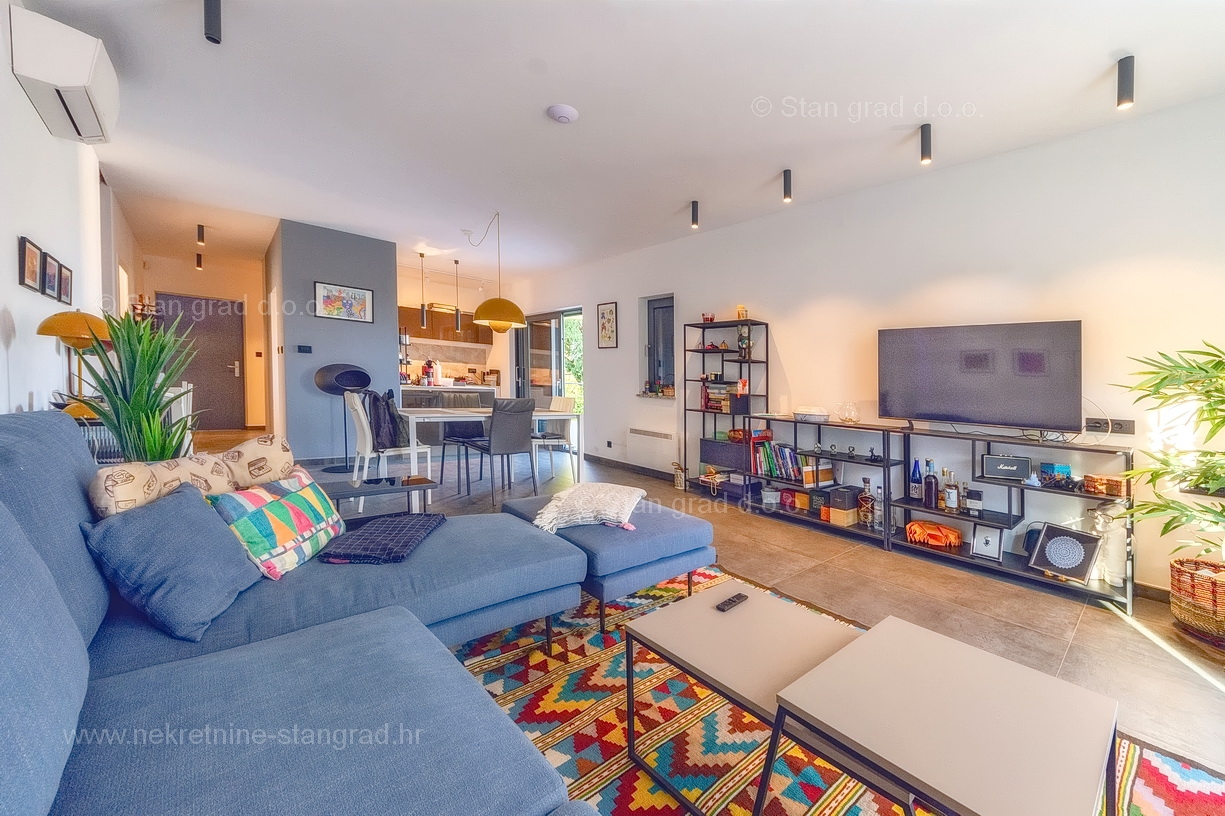 The Stan Grad Immobilien agency in Kvarner sells an interesting holiday home in the traditionally most sought-after Croatian Adriatic area, the island of Krk. The mentioned house is located in a very nice position not far from the sea in Soline Bay. Structurally speaking, this is a single-story house. The impeccably executed property consists of a total of 3 floors. The house has two separate apartments. The total area of this house is 300 m2. On the ground floor of the mentioned property there is a studio apartment, an equipped gym, a sauna and a 9-meter heated swimming pool. There is a two-story apartment on the first floor. The lower floor of the apartment consists of a spacious living room, kitchen and dining room, 1 bedroom with its own bathroom, a guest toilet and access to a large terrace with a panoramic view of the sea. On the upper floor of the apartment there are two bedrooms, each with its own bathroom. The interior of the property is particularly well maintained and fully equipped with the necessary technical devices and high-quality furniture. The added value of this entire building is given by the garden enhanced by a swimming pool heated by a heat pump, and the water is heated by solar panels and a sunbathing area, Mediterranean plants and a summer kitchen. The spacious garden of the described property offers covered parking for several vehicles with a charging station for electric vehicles. In addition to all of the above, it should be noted that the property has a beautiful open view of the sea. This real estate is owned by a natural person and as such, upon transfer of ownership to the buyer, is subject to the obligation to pay real estate sales tax in the amount of 3%. The owner of the house guarantees a quick transfer of the right to dispose of the property to the buyer. It will be our pleasure to receive you and serve you on the island of Krk. The Stan Grad Immobilien agency will provide all its clients with all the necessary assistance in registering ownership and taking over the real estate itself.