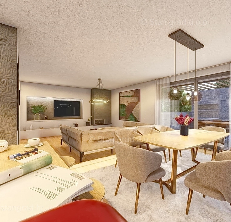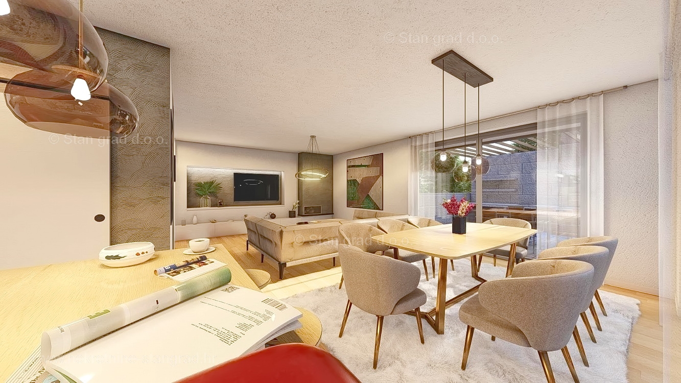 In the real estate offer of the agency Stan Grad Immobilien in the Croatian coast, on the island of Krk, there is a very attractive house perfect for a tourist stay and vacation or living on the coast of the Adriatic Sea. This exceptional house is located in an excellent location in Soline Bay, close to the sea. Structurally, this is a two-story house. The modernly designed house includes useful space on a total of 2 floors. The house occupies a total area of 131 m2. The mentioned area includes an entrance hall, toilet, kitchen with dining room and living room with access to the terrace and garden. On the first floor there is 1 master bedroom with its own bathroom, dressing room and terrace, and two bedrooms and a bathroom. In addition to the described property, this property includes a well-organized garden with a summer kitchen. There is a spacious parking lot in the yard of the described house. In addition to the above, it should be noted that the house has a beautiful view of this seaside place. The planned completion of construction is expected at the end of 2025. This property is owned by a natural person, so the buyer is obliged to pay sales tax in the amount of 3% when transferring its ownership to his name. The real estate seller guarantees a quick transfer of ownership rights and proper ownership and technical documentation. We are waiting for you in Kvarner, at the address of the office on the island of Krk. In addition to a professional tour and presentation of the property and its legal status, the friendly staff of our agency will be happy to help the buyer of the property in the transfer of ownership rights and the transfer of utility bills to their name.