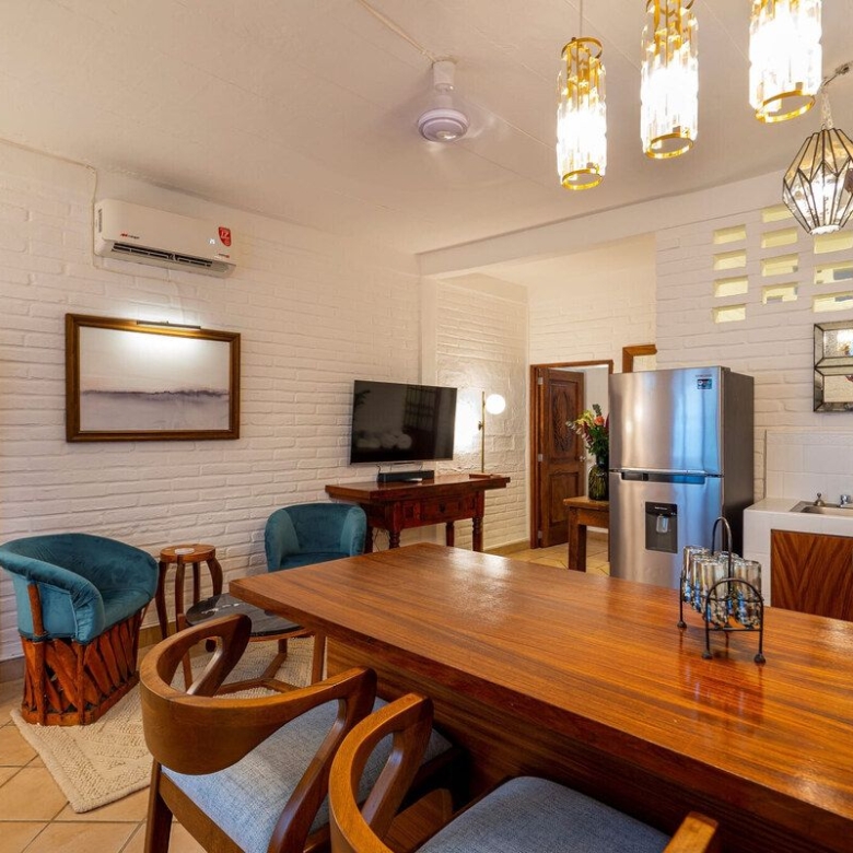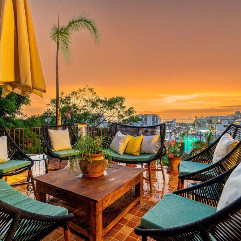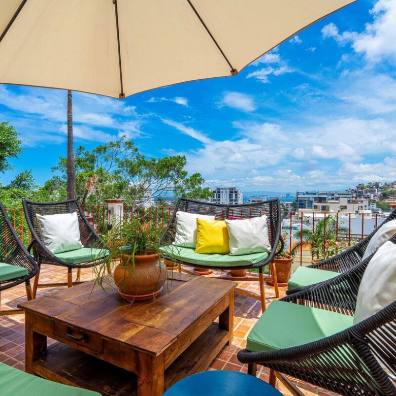 Casa Valentina, located on the romantic area in the south of Puerto Vallarta, offers a single house with rental potential. Casa Valentina, located above the Romantic Zone in South Puerto Vallarta, offers a unique home with rental potential. it is a 4/4 and includes a ground floor 1 bedroom apartment with full kitchen and bath, 2 studio rentals with kitchenettes and ensuite bathrooms, and a penthouse loft apartment with a full kitchen and ensuite bath. Each room is accessed externally, and can be rented individually. The property features a rooftop deck with an ocean view, a common area plunge pool, and is conveniently close to various services and entertainment options. Other amenities include bar, 2 filtered commercial ice machines, filtered sink water throughout the home, BBQ area, air conditioning in all living and sleeping rooms, garden, sitting areas, balconies, and rooftop dining and entertaining area.