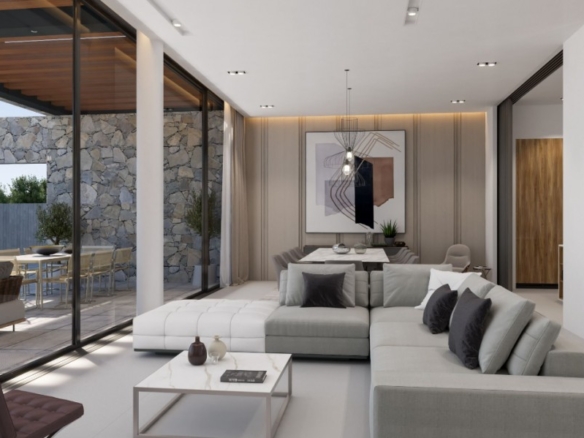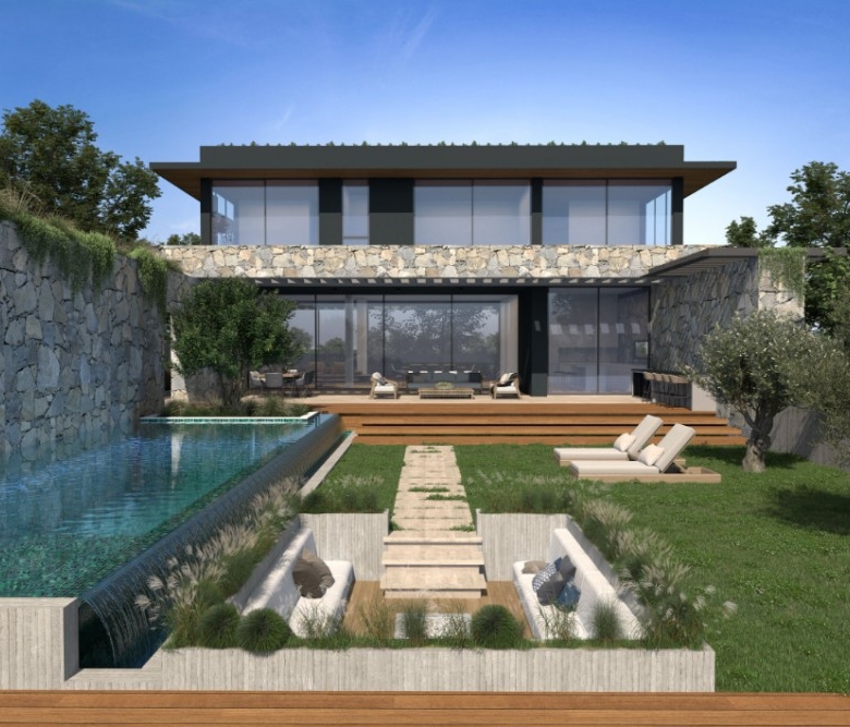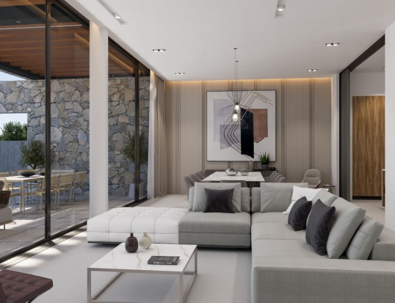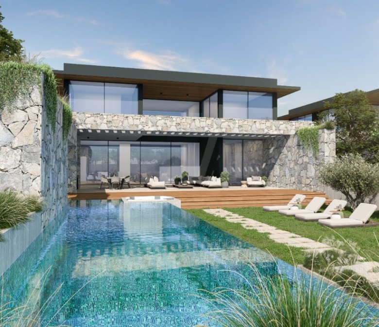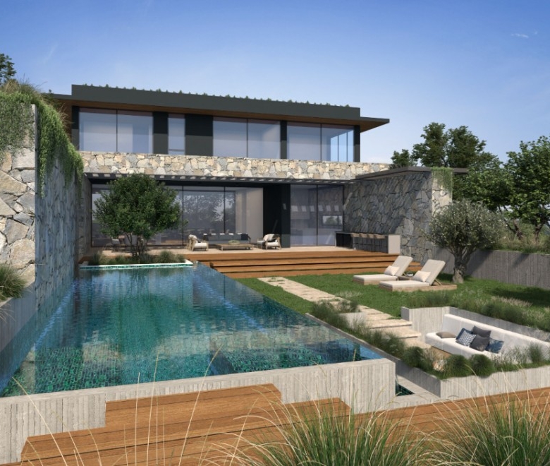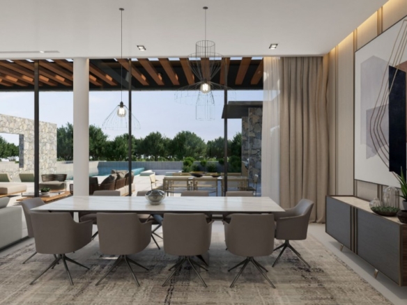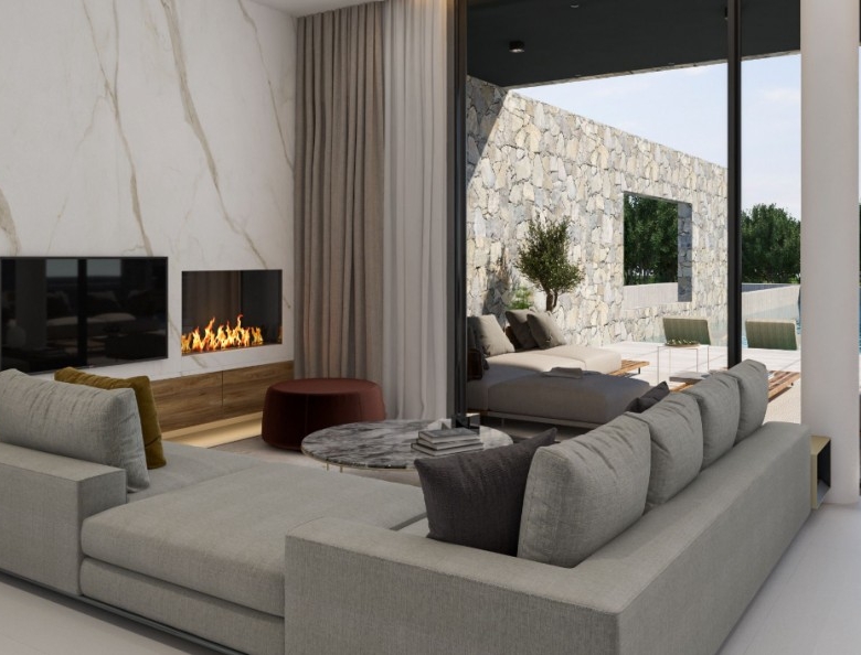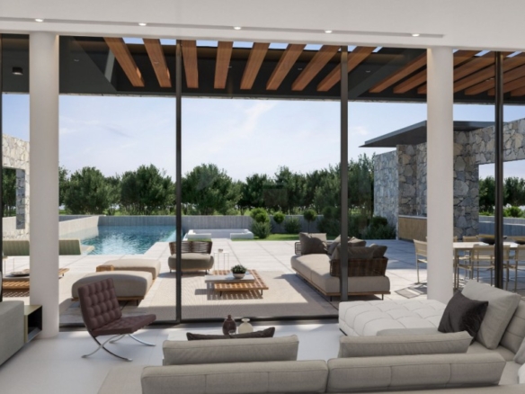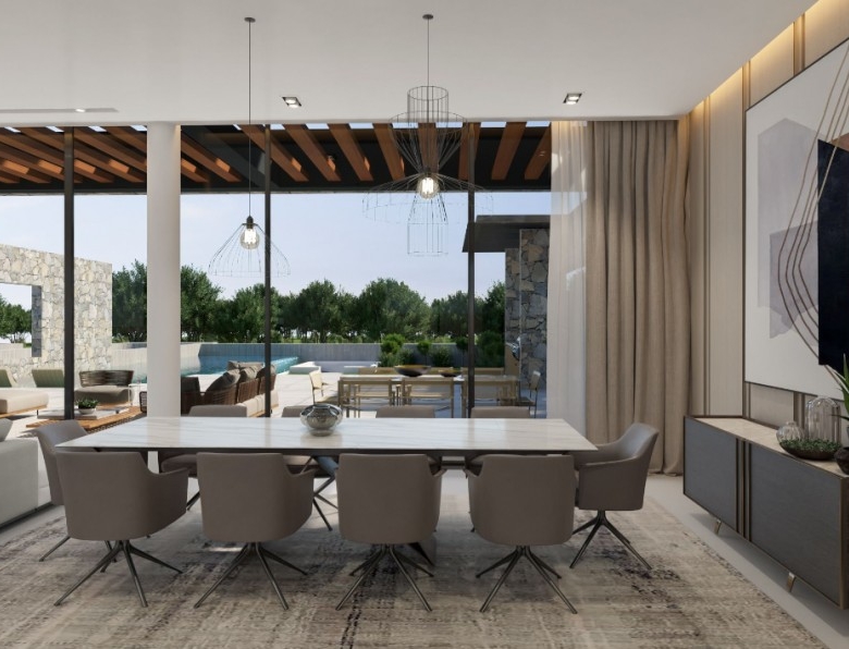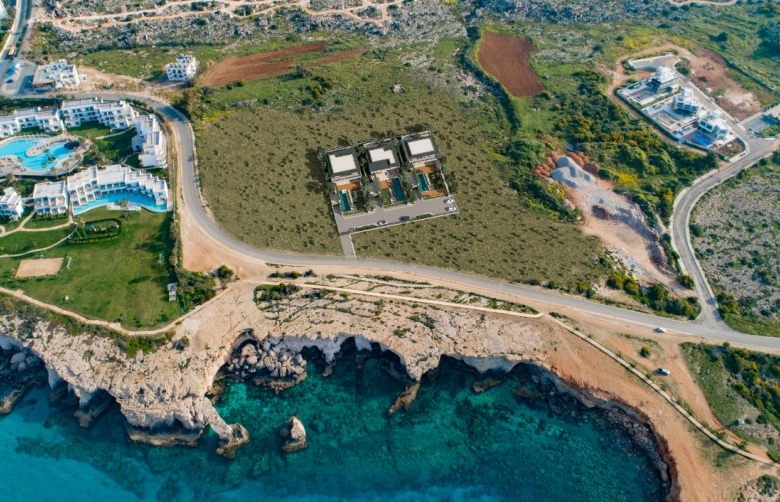 These villas are located in the well-known resort of Ayia Napa along the beachfront coastline of the land mark sculpture park . You will be waking up to the rhythmic sounds and the sweet fragrance of the Mediterranean waves. This will be your reality in these beautiful Residences. A combination of natural materials, pale colors and rough stone texture will enhance wild natural environment by coinciding with contemporary yet luxury character to blend naturally with the existing beauty. Each of our exclusive 3 level villas have been cleverly designed to give unobstructed sea-views of the Mediterranean East coast combined with views of the spacious landscaped gardens and natural surrounding areas. The villa consists of open plan living space and dining room along with a semi open plan kitchen area , outdoor relaxation area and dining space next to the infinity swimming pool. Full height glazing windows gives the benefits of a fabulous bright and vibrant atmosphere meeting and exceeding the highest of standards. The design of the five bedroom villas reinforces the idea behind the concept less is more, yet the richness of the space due to the materials and its composition create an authentic complexity