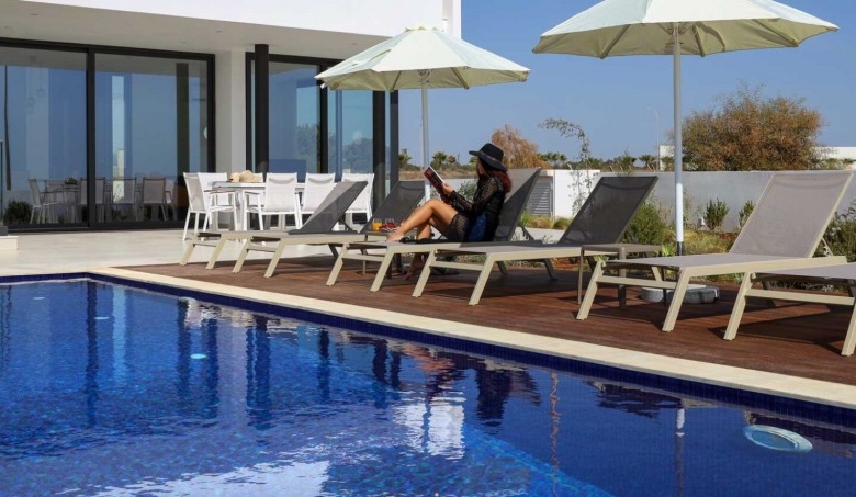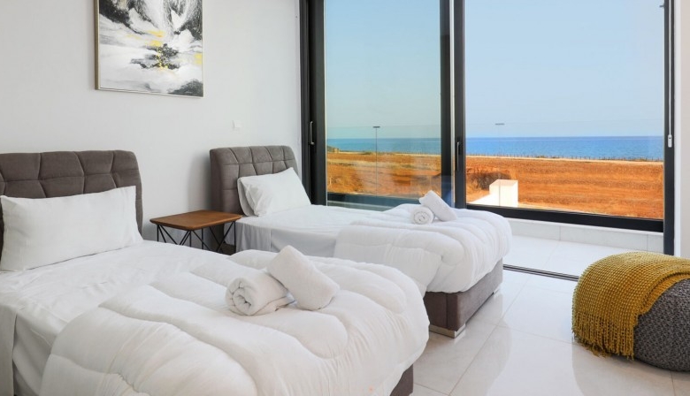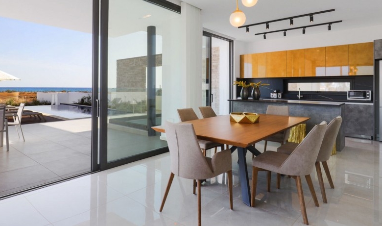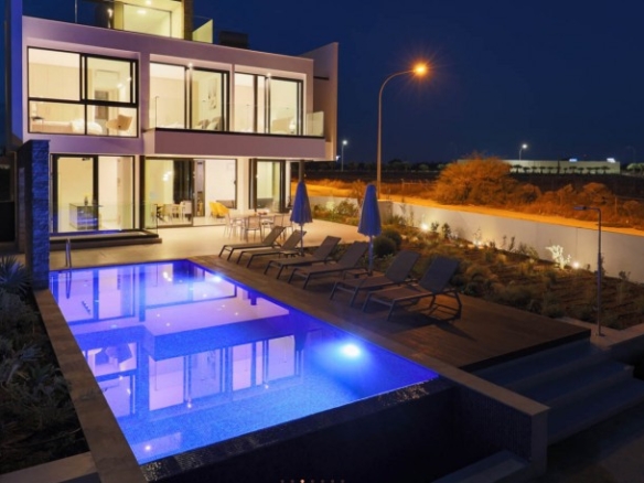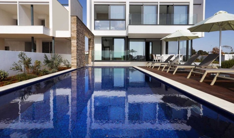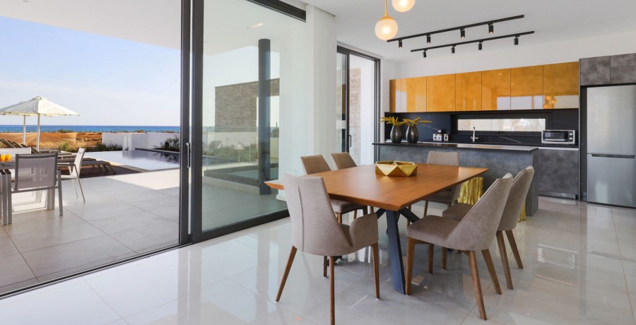 These Villas are an exclusive new development of luxury living spaces. Built close enough together to create a delightful little community, each home offers plenty of space to allow for maximum privacy and comfort. The sparkling white exterior flanked by rugged stone paneling and glittering glass façade exude a sense of luxury and carefree elegance, complemented by the vast white sands and azure waters of the island’s eastern coastline. The project comprise 7 villas, 5 sea view and 2 seafront, all with panoramic sea views. Each residence has three floors which include a lower floor, ground floor and first floor, as well as two bedrooms and one master bedroom, and three bathrooms. Ample balconies overlook lush greenery and an overflow high-tech swimming pool secluded in a beautifully landscaped garden, for residents to enjoy in the privacy of their own home. Each residence boasts its own roof garden, with stunning sea views across the horizon.