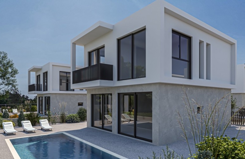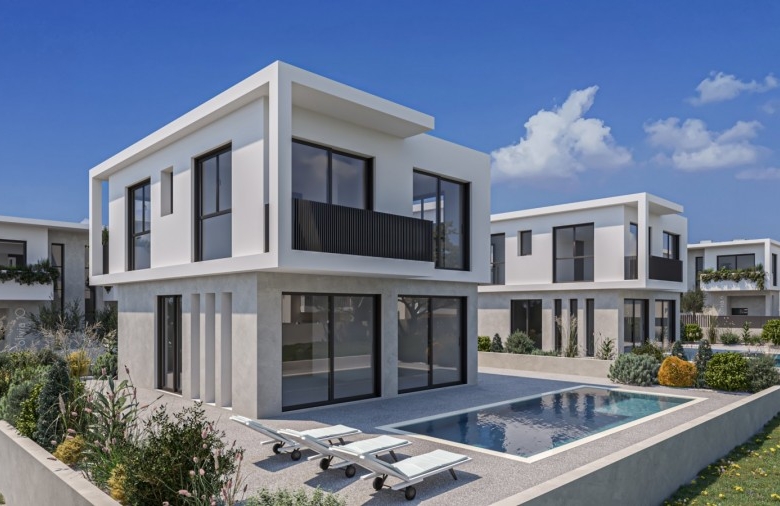 Located in an exclusive development in the northern Protaras neighbourhood of Pernera, the villa is easy walking distance to shopping, restaurants, entertainment, and 3 beautiful beaches. The villa has a private pool surrounded by a walled garden with a patio for sunning and dining al fresco.Inside is a large open-plan living area with a modern designer kitchen, a spacious dining area, and a salon looking out to the pool and garden. Upstairs find 3 large bedrooms, one with an en suite bathroom and two with a shared bathroom.The villa is finished with imported tiles, stainless steel hardware, and European faucets. High quality double glazed aluminium windows and 5 cm insulation make the villa easy to heat and cool.