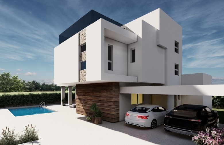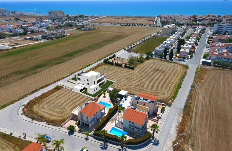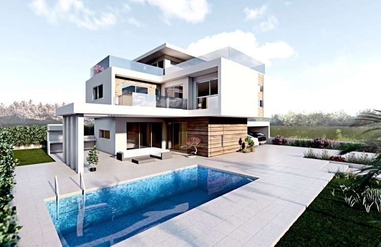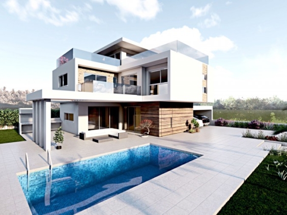 A modern, luxury, detached villa located in a quiet green area on Dekelia road, walking distance from one of the many Blue Flag beaches that can be found here. The property comes with luxurious finishes, covering the needs of today’s family for a well sized home that is close to all amenities, factors that contribute to a higher standard quality of life. The villa is made up of three living levels the ground floor, first floor and roof garden. Sea views from all floors and bedrooms! The ground floor hosts the open plan kitchen and living room, 1 ensuite bedroom and guest wc. The remaining 3 ensuite bedrooms (master with walk-in closet) can be found on the first floor, all with sea view. There is also a small kitchenette/laundry area. From this level there is access to the substantial roof garden, with full sea view and sink/bbq area, to enjoy Cyprus’s climate that favors outdoor living. Externally there is a huge garden area and an overflow swimming pool. now available