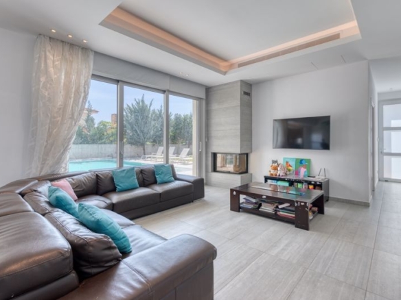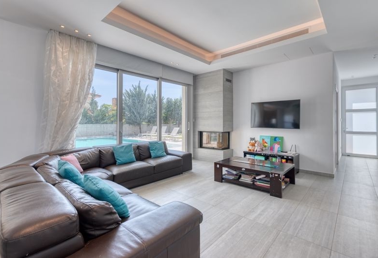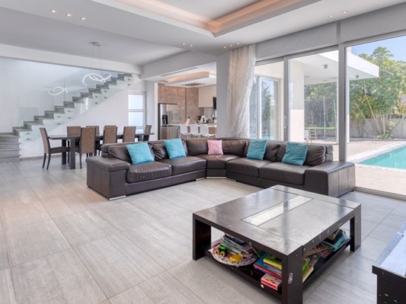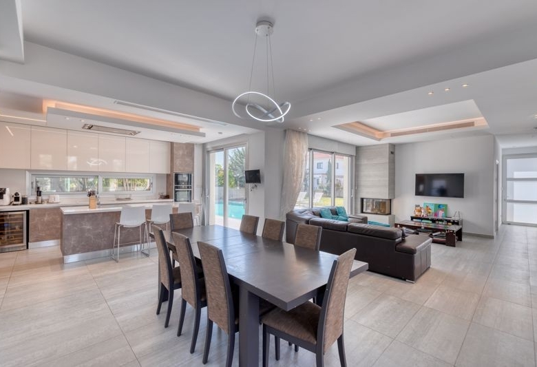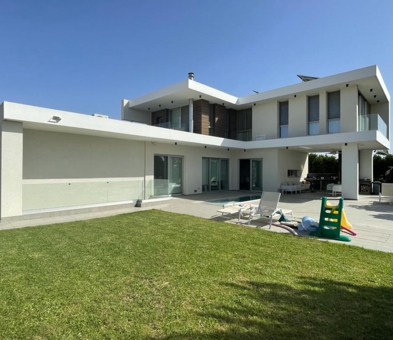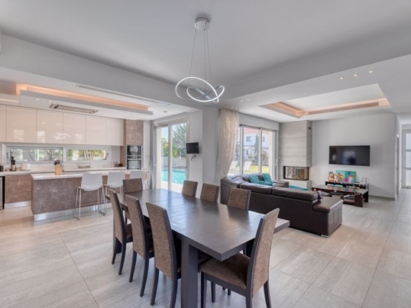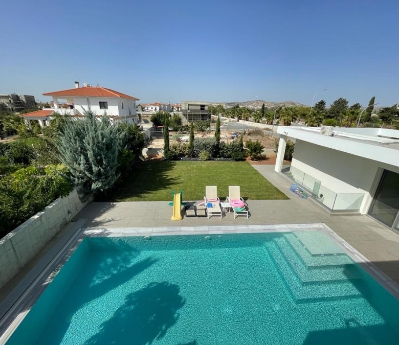 Six-bedroom detached villa, nestled in the sought-after Pyla Touristic Area, just off Dhekelia Road in Larnaca. With land deeds available, this magnificent property offers modern design, high-end finishes, and is set on an expansive 751 m² plot.Key Features Include:Spacious Living: 230 m² of internal living space with a modern open-plan kitchen, fitted appliances, a stylish dining area, and a cozy lounge featuring a log burner.