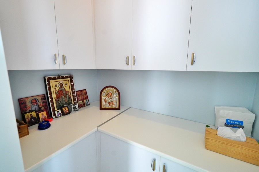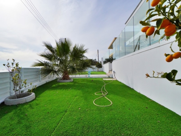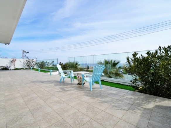 A stunning fully renovated Sea view villa Located on the costal side of Ayios Theodoros, situated on an elevated 815sqm plot, offering unobstructed views of the Mediterranean Sea. With a spacious covered area of 199sqm, this home is designed for comfort, luxury, and breathtaking scenery. The main floor features two adjacent living rooms, a fully equipped kitchen with an island, and floor-to-ceiling glass doors that flood the space with natural light and panoramic sea views. There is also a garden-view bedroom with an ensuite shower, a guest WC, a laundry room with premium appliances, and a custom-built storage area. The second floor hosts the 30sqm master suite, offering stunning sea views and a private ensuite shower. Two additional bedrooms each feature large ensuite showers, with one overlooking the sea and the other the mountains. All bedrooms have balcony access. The top floor boasts an 80sqm roof garden with a kitchenette, providing a 360-degree view of the coastline and mountains—the perfect spot for relaxation and entertaining. Externally, the property includes a 350sqm artificial grass garden, a large patio area, and a lush green zone with an automated watering system, featuring a variety of trees such as Bougainvillea, Magnolia, Tangerine, Pomelo, Kumquat, Lemon, and Palm. Additional amenities include a garden house for storage, parking for three vehicles, solar panels, a CCTV security system, and brand-new inverter A/C units in every room. With Title Deeds available, this villa is an exceptional opportunity for those seeking luxury, privacy, and breathtaking views in an exclusive coastal setting.
