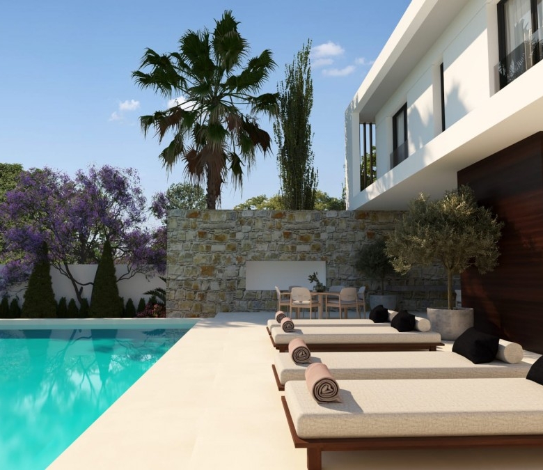 The Villa is located within the heart of the Larnaca Tourist Area, just about 300 meters away from the best Sandy Beaches of Larnaca.The Class A Energy Efficient Villa offers 5 bedrooms with 5 en suites showers, 2 guest toilets, 1 Garden WC and and 263 square meters of Luxury finished living covered space and is positioned within an advantageous plot of 847 square meters opposite a neighborhood green area.The area is known as the most prestigious area for luxury Villas by the sea and features a strip of hotels, restaurants and other entertaining facilities all by the beach. The Golden Bay Hotel, Lordos Hotel and Sandy Beach Hotel with all the amenities accompanying the hotels are just a mere stone’s throw away.