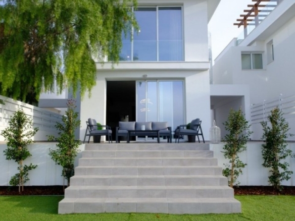 The villa features big openings with glass doors, opening to spacious verandas and gardens.