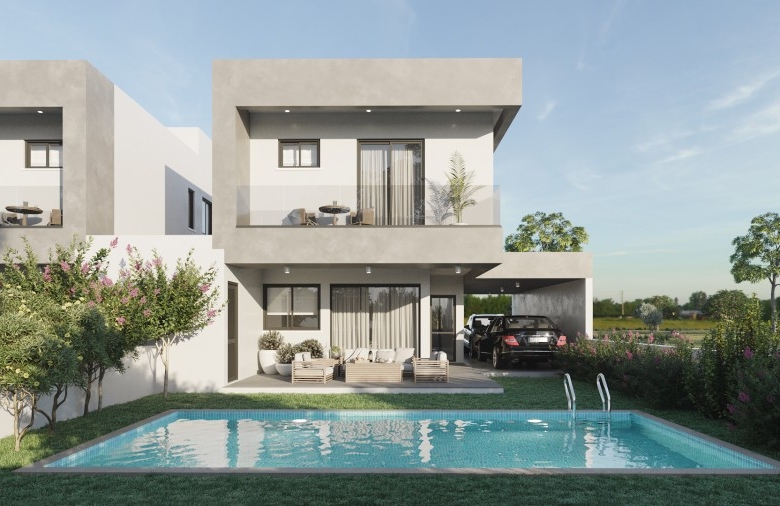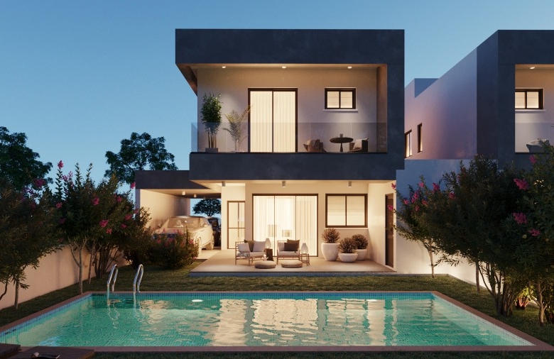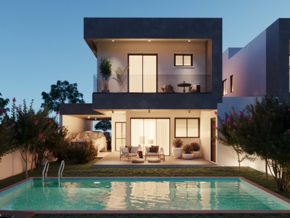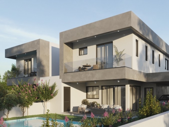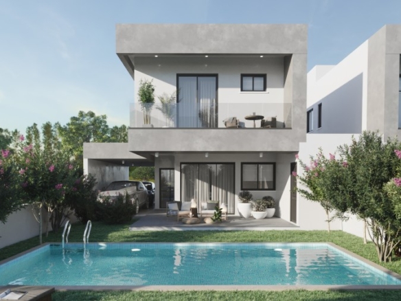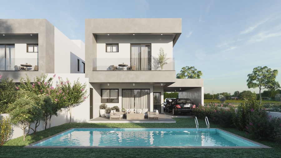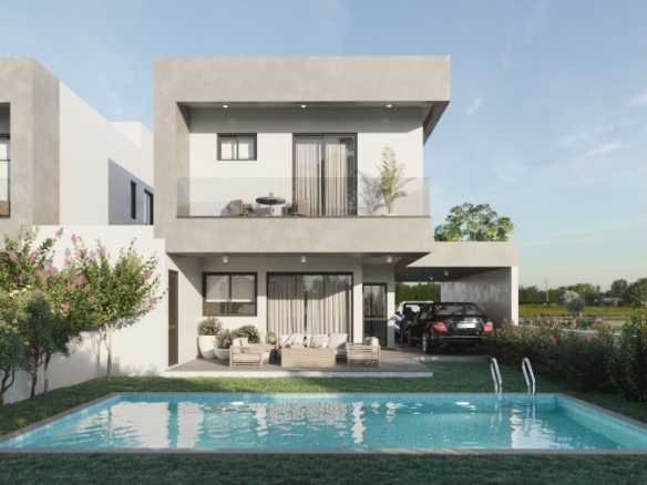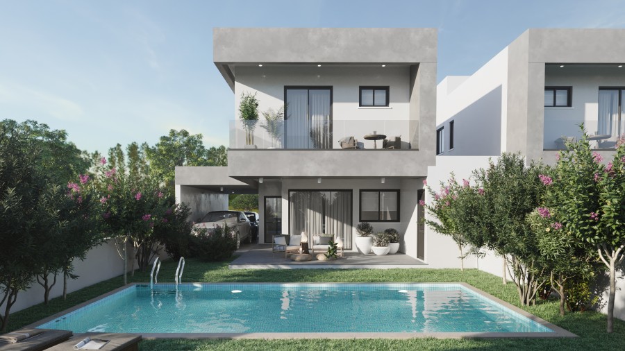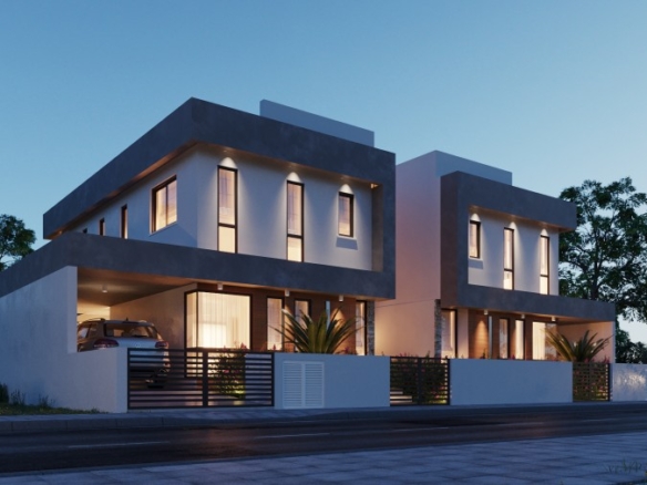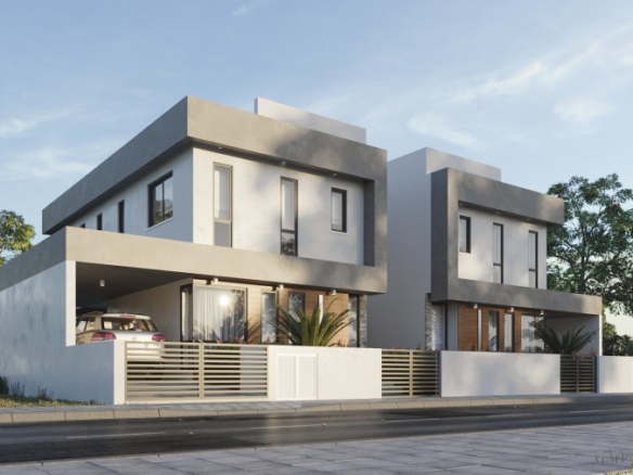 Presenting two modern, luxurious detached villas, these exquisite homes are situated at the entrance of Kiti in Larnaca, a prime location just three kilometers from the airport and main highway, and a mere 3.5 kilometers from the beach. Each villa is set in a peaceful, quiet neighborhood, surrounded by low-rise houses and positioned on a wide street, offering a sense of openness and privacy. The thoughtfully designed layout includes an open-plan kitchen and living area, perfect for both daily living and entertaining, along with a guest WC on the ground floor. The three well-proportioned bedrooms on the upper level include an en-suite shower in the master bedroom and a spacious family bathroom. With a semi-furnished interior, two parking spaces, and an optional swimming pool, these villas offer an ideal retreat blending modern comfort with a strategic, convenient location close to all essential amenities.