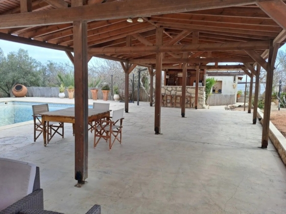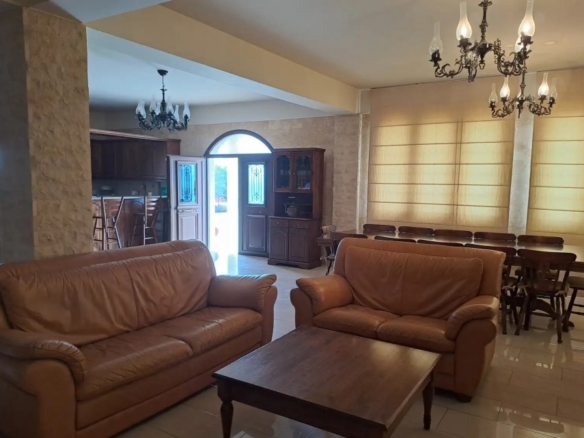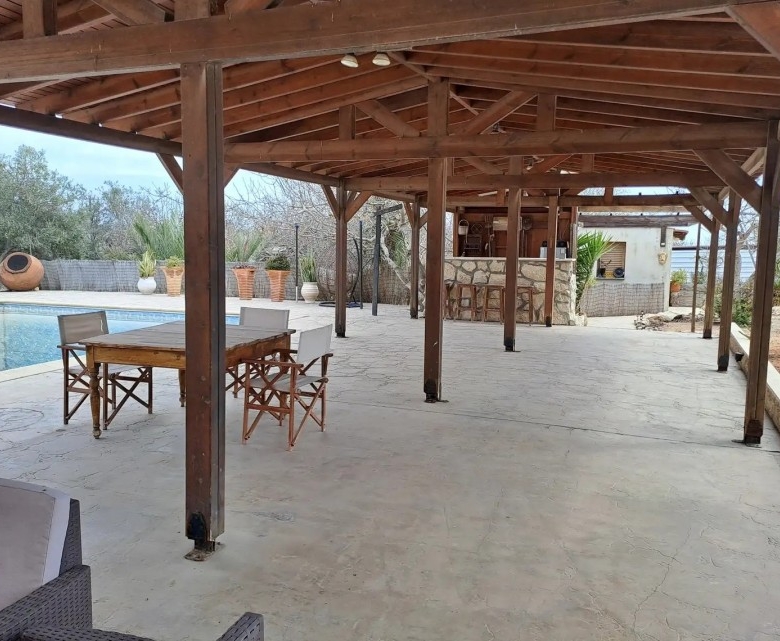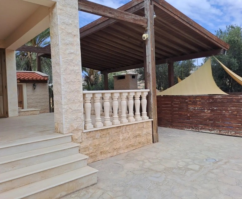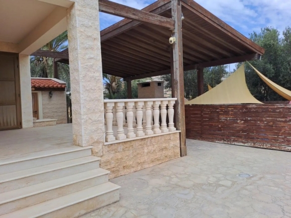 Discover a unique opportunity to own a beautifully maintained home just outside the residential zone of the Pyla community. Adjacent to a registered dirt road and fully serviced (excluding sewerage), this property offers privacy, comfort, and a wealth of special features rarely found in one place.Set on spacious grounds with mature landscaping, the home boasts central heating, a sauna, private bar, swimming pool, children’s playground, barbecue area, and a traditional outdoor oven. For those seeking peace and serenity, there’s even a private chapel on-site.Nature lovers will appreciate the olive grove and a variety of trees including pistachio and palm trees, while an on-site borehole ensures independent water supply for gardening or leisure use.This medium-aged house is in excellent condition and ready to welcome its next owner—ideal for permanent living, holiday retreat, or investment.