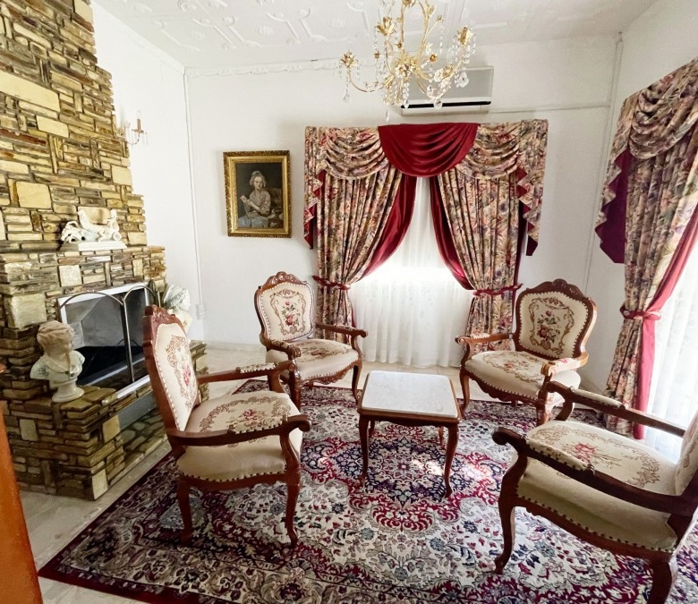 A stunning stone-built villa in an elevated area of Oroklini, offering breathtaking mountain views. This charming property features three spacious bedrooms, including a master with an en-suite, a large family bathroom upstairs, and a guest toilet on the ground floor. The expansive living and sitting areas create a warm and inviting atmosphere, complemented by a separate dining area that leads to a large, fully separated kitchen.Set on a generous plot, the villa also includes an independent maid’s house, complete with its own kitchen, living area, bedroom, and bathroom—perfect for guests or additional accommodation. The beautifully landscaped garden boasts multiple sitting areas, including a stone-built barbecue area, making it ideal for outdoor gatherings and relaxation.Located just a few minutes’ drive from the charming town of Oroklini, the villa offers easy access to all essential amenities, while the beautiful sandy beaches are only a 5-minute drive away. A unique opportunity to own a home that combines traditional charm, space, and a prime location close to both nature and the sea.