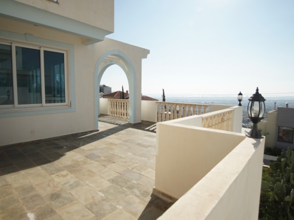 A beautiful 9 bedroom villa situated in the peaceful village of Agia Fyla. The villa has breath taking panoramic sea views.As you enter you have a big open plan Lounge, Kitchen and dining room leading onto the patio and pool area. There are 2 bedroom and 2 bathroom on this level.Going to the 2nd floor we have the same layout as ground level but have 3 bedroom and 1 guest bathroom. All leading out onto balcony with Breath taking sea views.Top floor we have 4 bedrooms with en-suite bathrooms with balconies.