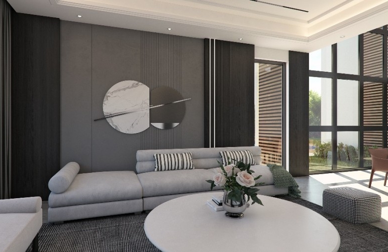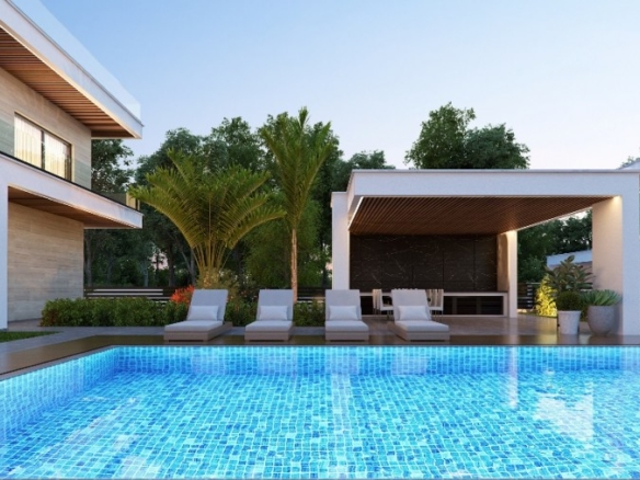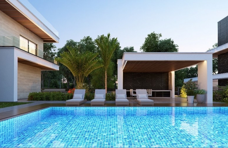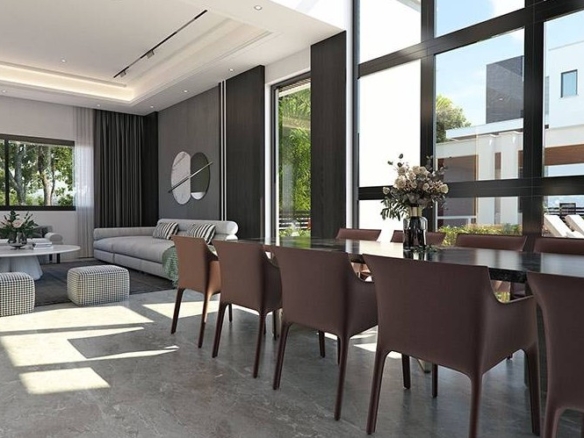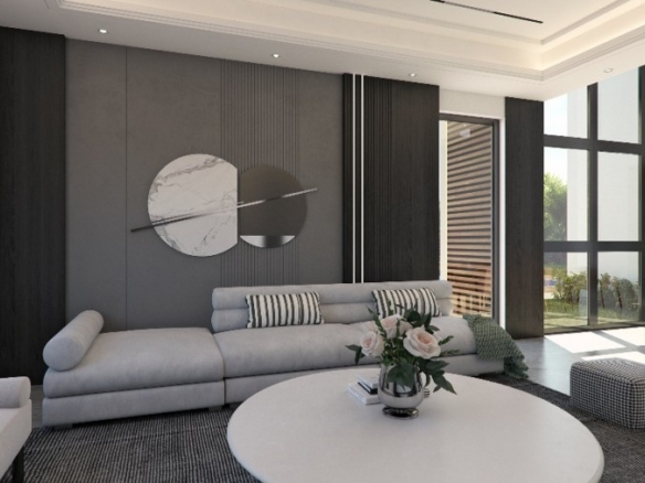 This is an elite project of two luxurious homes in the private and serene area of Agios Tychonas, which combines outstanding mountain and sea views. Every square inch of the four to four-bedroom villas was created to provide a great escape into an ethereal island lifestyle, and each villa is custom-designed to carry a well-appointed, unique, modern look. Both villas include private parking, private green gardens, swimming pool, elevators, outside sitting area, and large balconies. The homes are gated, secured, and surrounded by tranquil nature, providing a vibrant feel of sublime relaxation. In addition to the stunning location, the rich green and hill-bound surrounding areas immerse the project in a hard-to-find, peaceful environment just a few minutes away from the sandy beaches and 5* hotels, and only ten minutes away from the city, allowing full and quick access to all amenities and city life. The project caters to those looking for both city and holiday homes, while also offering incredible investment value.Each villa is custom designed to carry a well appointed unique modern look, with a private parking, private green garden, swimming pool, outside sitting area, and balconies overlooking both mountain and sea views.This villa features uncovered veranda of 87sqm and a private roof garden of 58 square meters. Additionally, covered parking of 42sqm.Delivery: Q4 2026