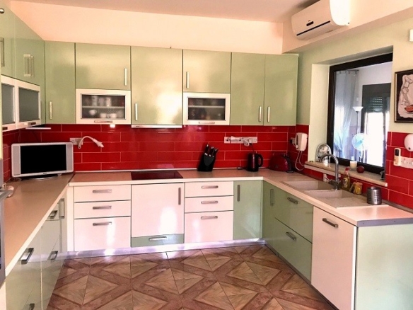 This project locates in the eastern village of Limassol named Asgata, which is only 20 minutes drive from the city and 15 minutes to the nearest municipal beach. The picturesque village has an altitude of 190 meters an ideal place to stay away from the busy life The complex is an ideal place for a big family since it composes of 3 collectively designed houses, whereas the 2 are not fully completed. On the first plot, there is a fully furnished house completed in 2010 that covers the area of 650 sq.m. and includes a big terrace with a swimming pool. On the first floor of the house, you enter into a spacious living room with a pool table and a fully equipped modern kitchen. As well there is a special room for children to play, a studying room and a guest toilet. On the second floor, there are 3 bedrooms and each has en suite facilities. In the basement, you will find additional 2 bedrooms with an en suite, a sauna with a lounge area and a small swimming pool, a garage for 2 cars, and a maid’s room. The second and third houses are unfinished, but they have been planned to be similar to the completed one, and all of them are connected with a passage along the ground floor.