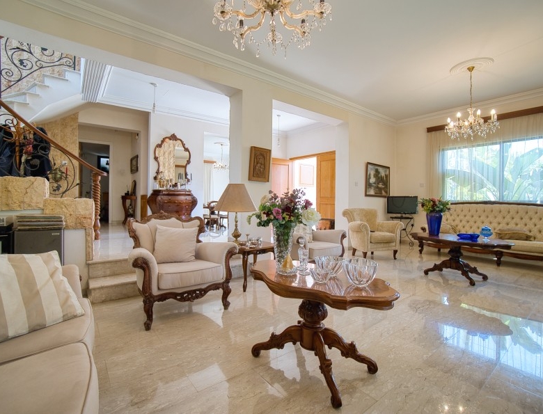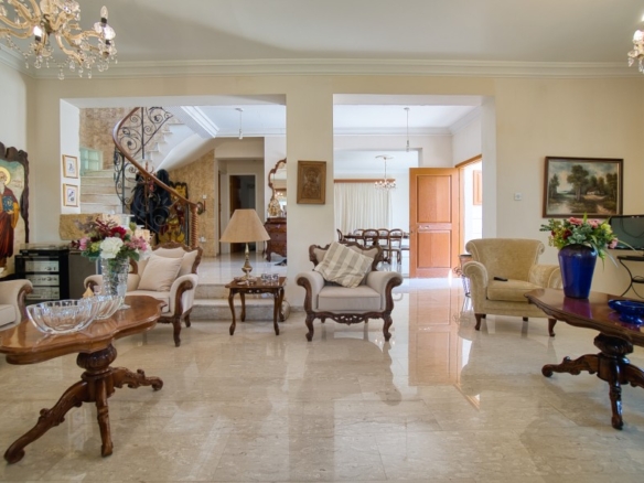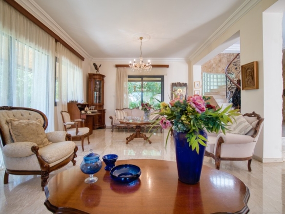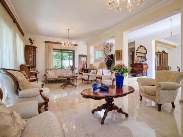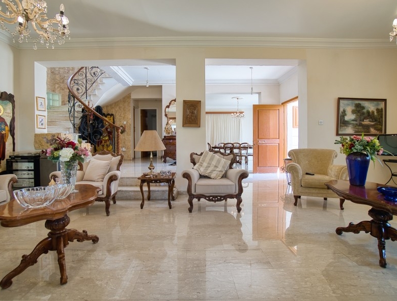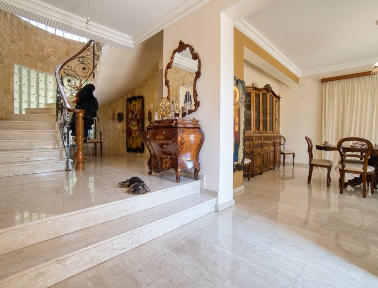 This luxurious villa consists of 2 levels with panoramic views of the Mediterranean Sea with a swimming pool and a large garden. The villa is located on the elevated area of Agios Athanasios, Sfalagiotissa area, Limassol. 10 minutes drive east of the city center, on a quiet residential street with a park next by, only 5 minutes from the coastal avenue. Easy access to the highway linking all major cities on the island. There is a ground floor, a beautiful lobby, a living room, a TV room, a master bedroom with a toilet, 3 bedrooms, 1 bathroom, a maid’s room, a kitchen, large verandas, parking, a swimming pool (5 * 10 m) and a barbecue area. The house is located close to the new Foley Private School and is ideal for families.