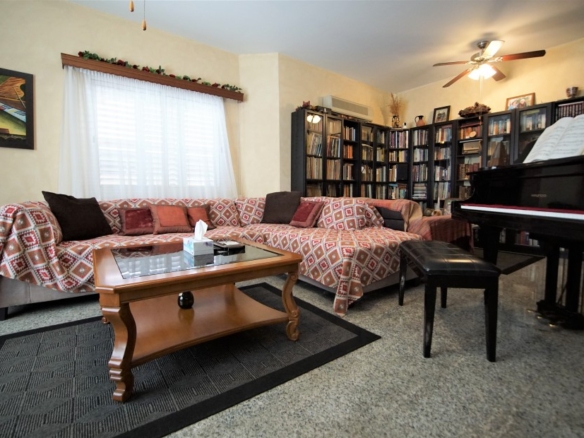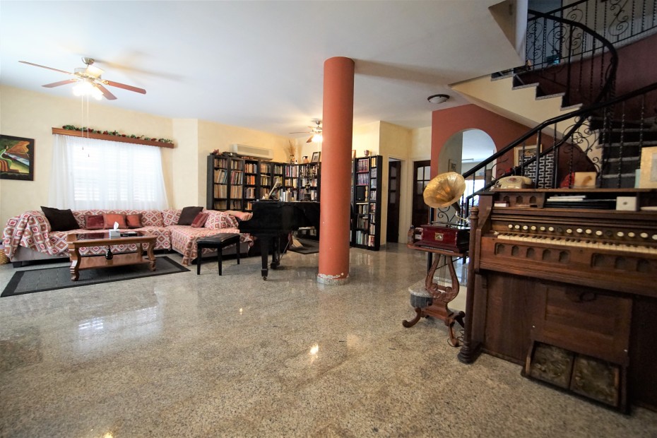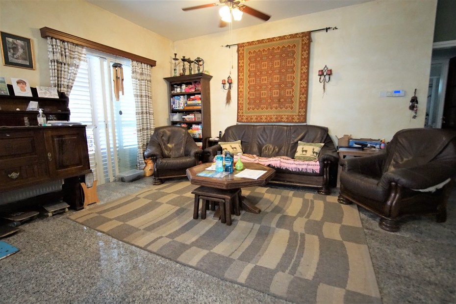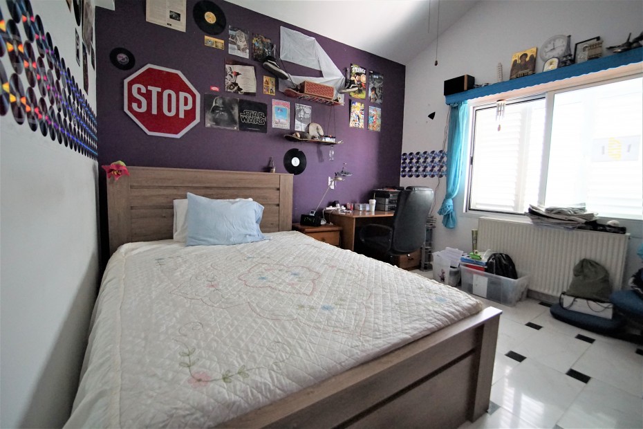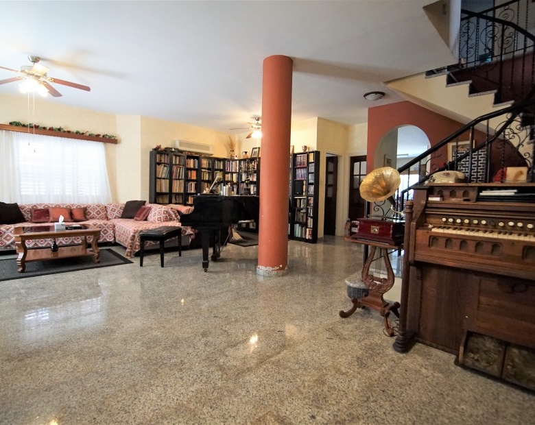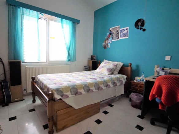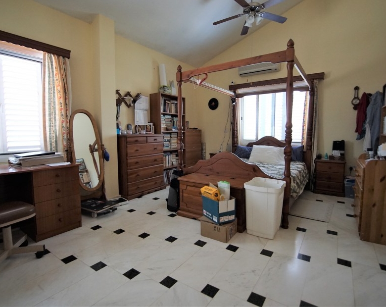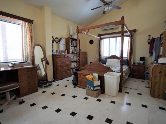 A spacious 5 bedroom detached house for sale in Agios Athanasios, Limassol. It is located in a quiet residential area not far off the highway with a community park nearby. You can find all amenities just a short drive away such as bank, school, kiosks and cafes. The house offers photovoltaic system and well water with electric pump and timer. It is split over 2 levels: ground floor offers a large office space, living room, open plan kitchen with dining and seating area, separate maids room with en suite and guest WC. The first floor has a master bedroom with en suite, 4 bedrooms, office, veranda with a view
