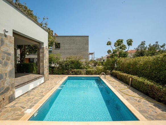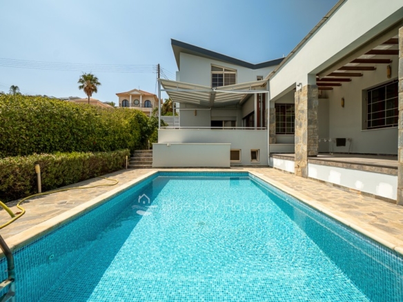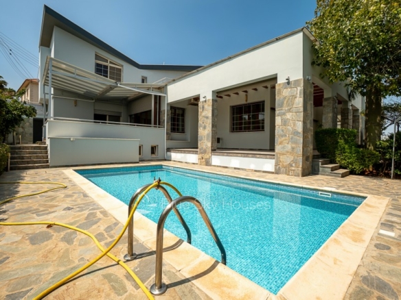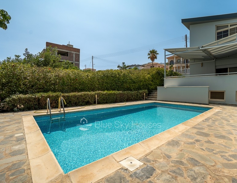 This stunning 3+1 bedroom detached villa in Agios Athanasios offers breathtaking sea and mountain views, nestled in a peaceful residential area. The villa boasts a private swimming pool, providing a tranquil retreat just minutes away from everyday conveniences like pharmacies, kiosks, cafés, and food spots. The city center and beach are just a 10-minute drive away, making this the perfect location for both relaxation and accessibility.The villa features three spacious ensuite bedrooms, plus an additional ensuite maid’s quarter for added convenience. One of the ensuite bedrooms is located on the first floor, accompanied by a cozy living room and kitchenette, with its own private entrance—ideal for guests or additional privacy. The ground floor offers the other two ensuite bedrooms, along with a large kitchen, a comfortable living area, and a dining room that seamlessly connects indoor and outdoor living spaces.The villa is designed for comfort and practicality, with private parking for several cars behind automated gates, central heating, air conditioning, and a security alarm system. The property benefits from a well, providing free water for the swimming pool and garden.Enjoy expansive verandas, including a covered one by the pool and a large uncovered veranda upstairs with stunning views—perfect for relaxation and outdoor living. With ample space inside and out, this villa has immense potential to become your dream home. The property comes with title deeds for a smooth purchase process.