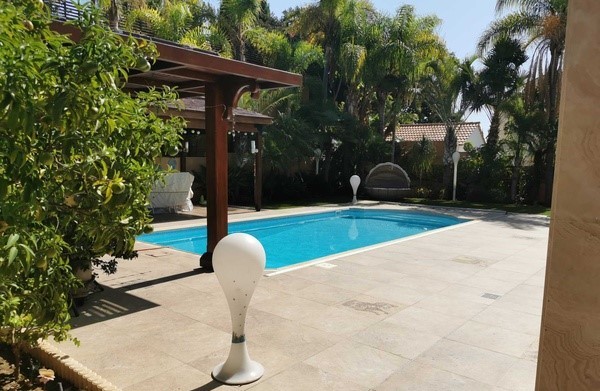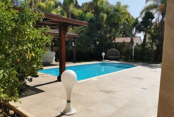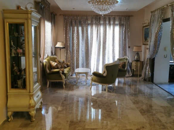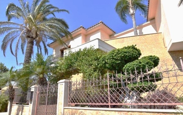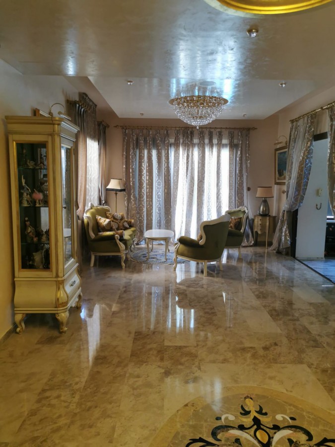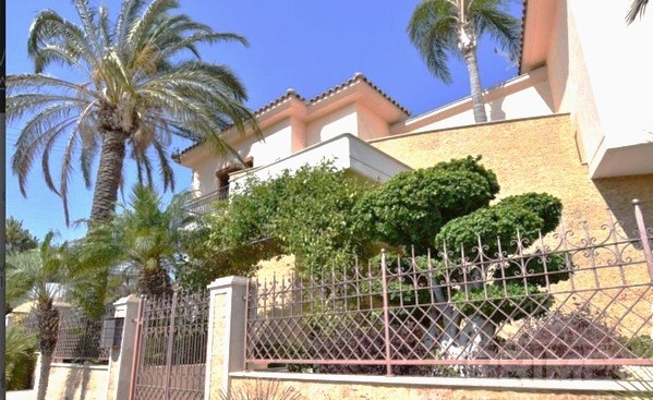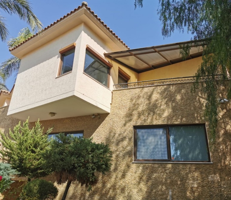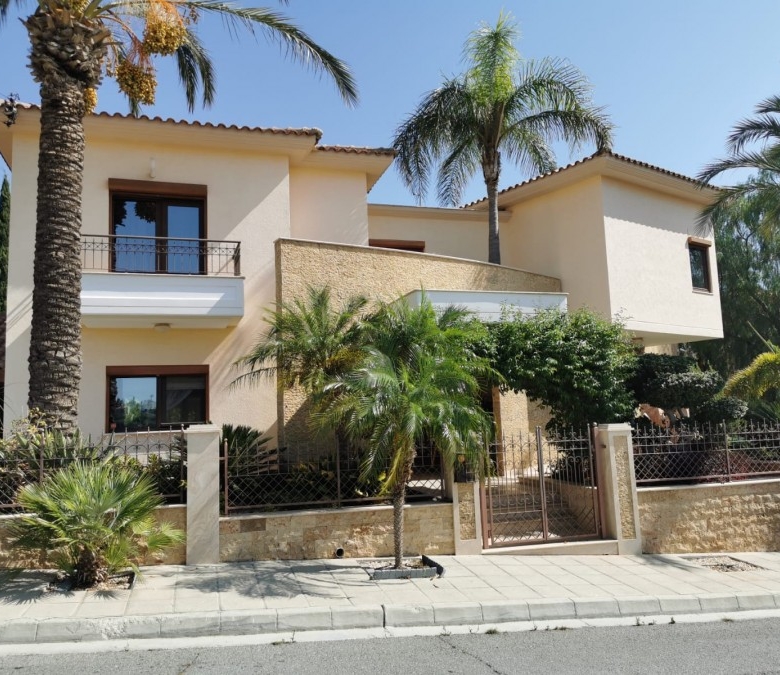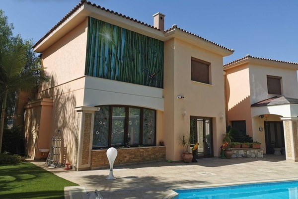 This luxurious 500 sq m villa and 1000 sq m plot in Cyprus is situated on the hills overlooking Limassol with the gorgeous city and sea views. The hills of Kalogiri-Mesovounia are the most prestigious area of Limassol. This is a three-level house with 5 bedrooms which come with 5 bathrooms, a spacious living room, a large kitchen and dining area, a bright play area for your children, and on top of that – a Telco elevator. Next to the house, there is a compact purposed-built guest house with an independent power and water supply, an underfloor heating system and air- conditioner, and a separate entrance. A staff area is located in the basement of the house and has a separate entrance, an individual kitchen, and a bathroom with a shower unit. This area is also equipped with a heating system and an air-conditioner. This is a customized project which is finished with the most expensive and luxurious materials: Venetian plastering, marble floor, with an effective staircase, hardwood door frames, and stain glasses from Italy – for inside decoration. The outside decoration of this house includes graffito and natural stones. You can enjoy the view on the surroundings from two balconies covered with the high- quality’s polycarbonate canopies.The building is fitted with UPVC windows and the electric shatters. The villa is also equipped with an HRV air conditioning system. The central underfloor heating is powered by the diesel heater. The first level has a parquet floor. This is a Clever House equipped with electrical and sound systems built in the ceiling and controlled via iPad .The kitchen design is a treat: handmade wooden units, kitchen appliances made by Gaggenau, three integrated refrigerators including a wine fridge. The way this villa is furnished is a bonus as the furniture, lighting, and curtains were supplied by top Italian brands. There are also two spacey dressing rooms, a sauna, the Hammam steaming cabinet near the master bedroom, and two jacuzzis. The villa has a cinema: TVs, Smart TV, DVDs, CD-changer, DVD-recorder, Russian channels satellite dish. The Internet, Wi-Fi, and telephone land line are available.