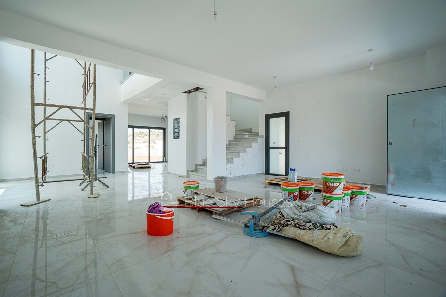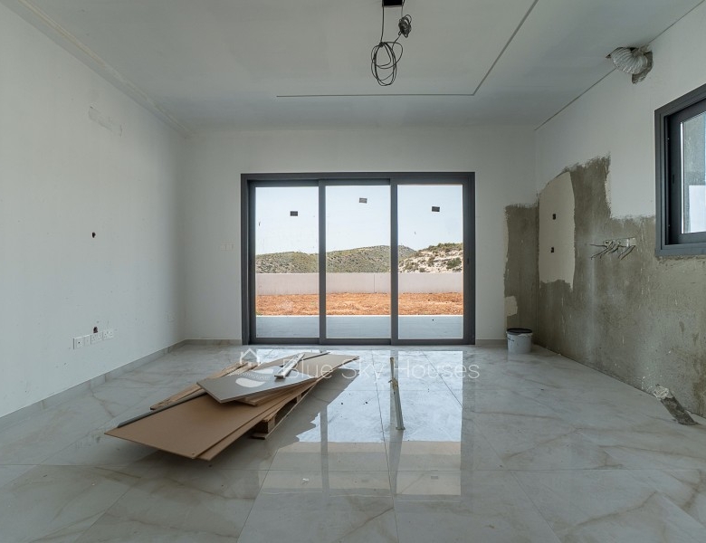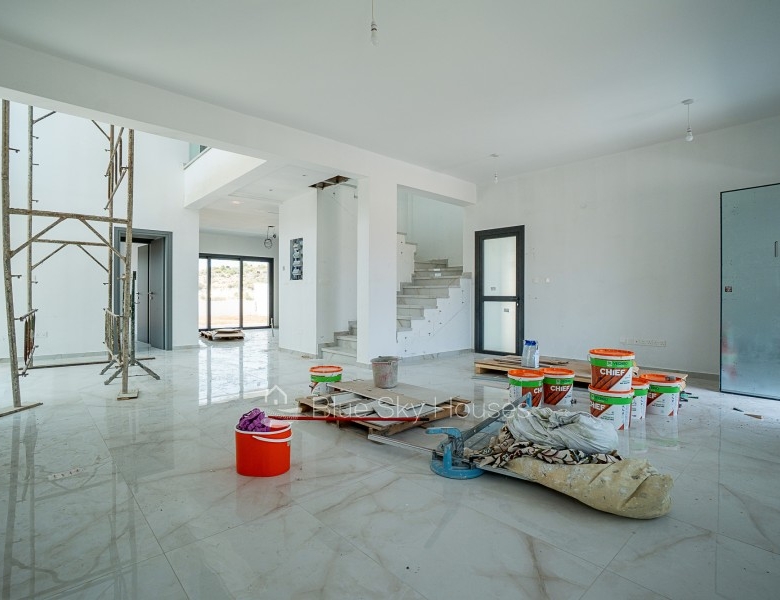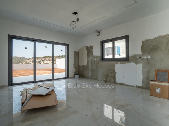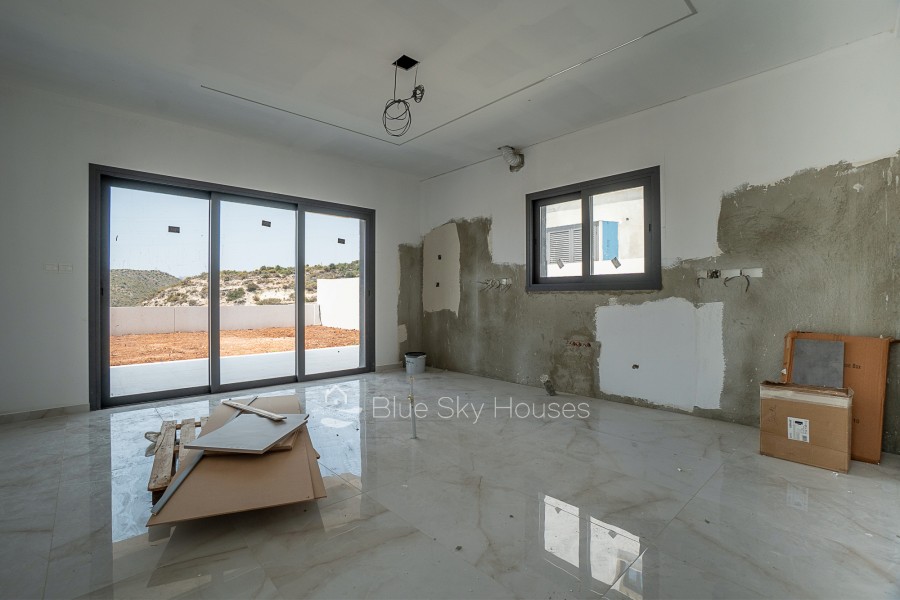 This exceptional detached house is located in a serene neighborhood, offering breathtaking mountain and sea views. With just a short drive to all the necessary amenities, it provides the perfect blend of comfort, space, and convenience.The house is thoughtfully designed with a spacious layout, featuring 4 bedrooms, all situated on the first floor. Two of the bedrooms are ensuite, while an additional bathroom serves the remaining bedrooms. A guest toilet is conveniently located on the ground floor. An extra room on the ground floor can be used as an office or guest room, adding flexibility to the home’s design.The open-plan living space includes a well-designed kitchen with a storage room nearby. A dedicated laundry room on the top floor adds practicality. Outside, a private garden offers a perfect space to relax while enjoying the peaceful mountain views. The property also features a closed private garage, ensuring security and ample parking space.This is a rare opportunity to own a beautifully designed home in a tranquil yet well-connected area, offering both luxury and functionality.Delivery – May 2025.